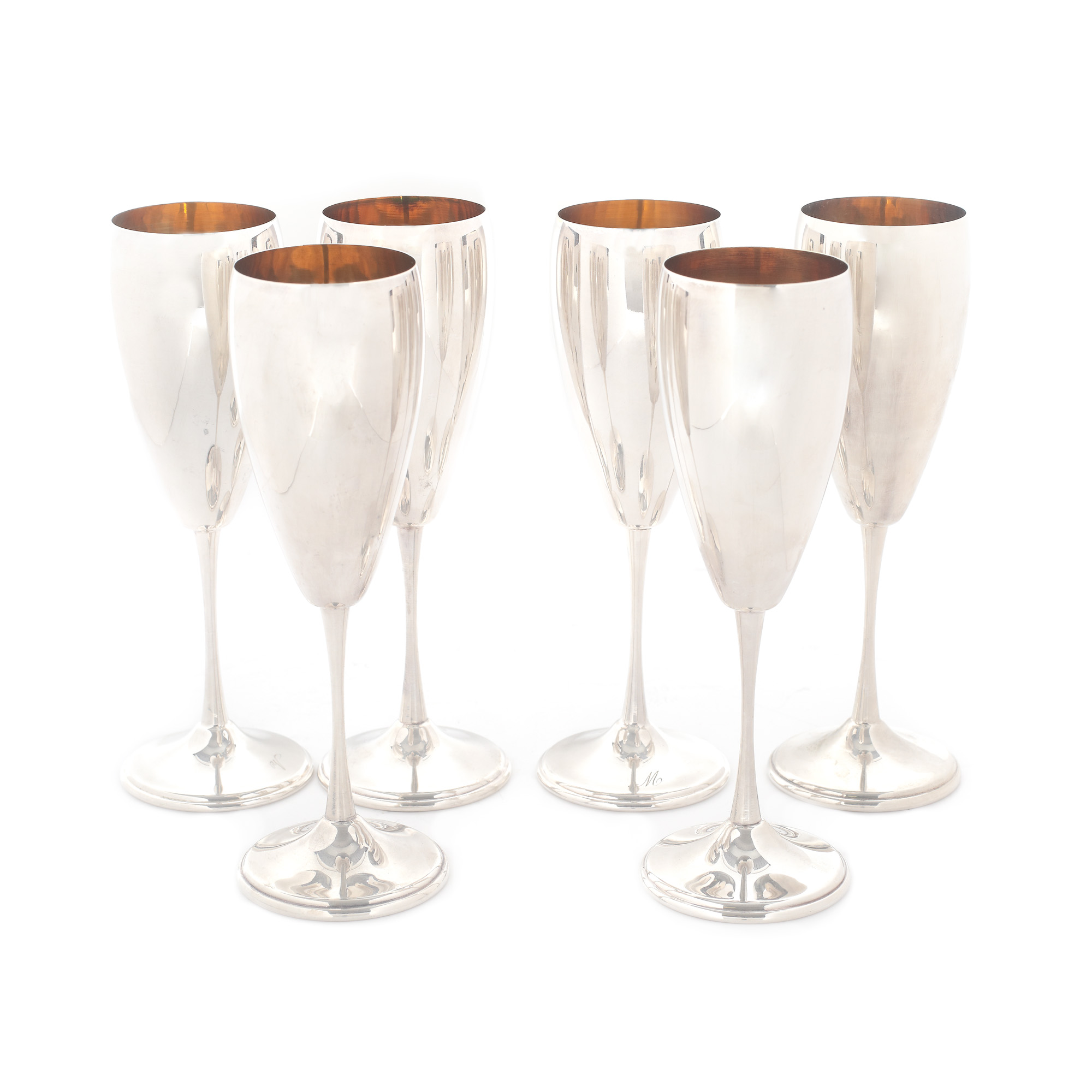 64. Set de șase pahare din argint parțial aurit, pentru vinuri spumante [Sec. XX]