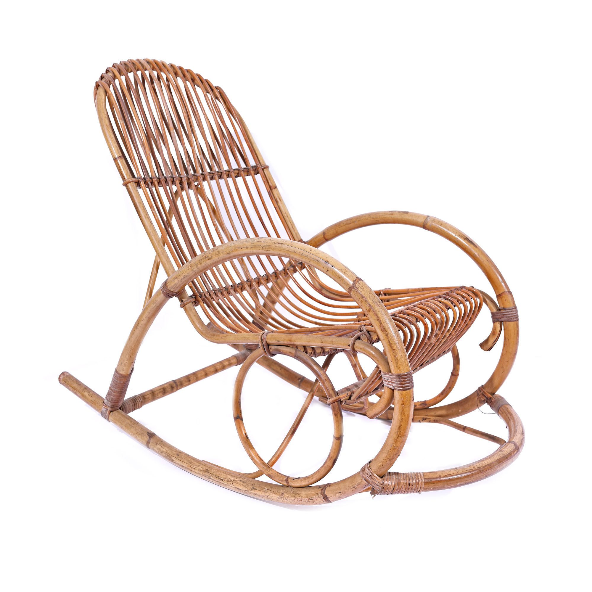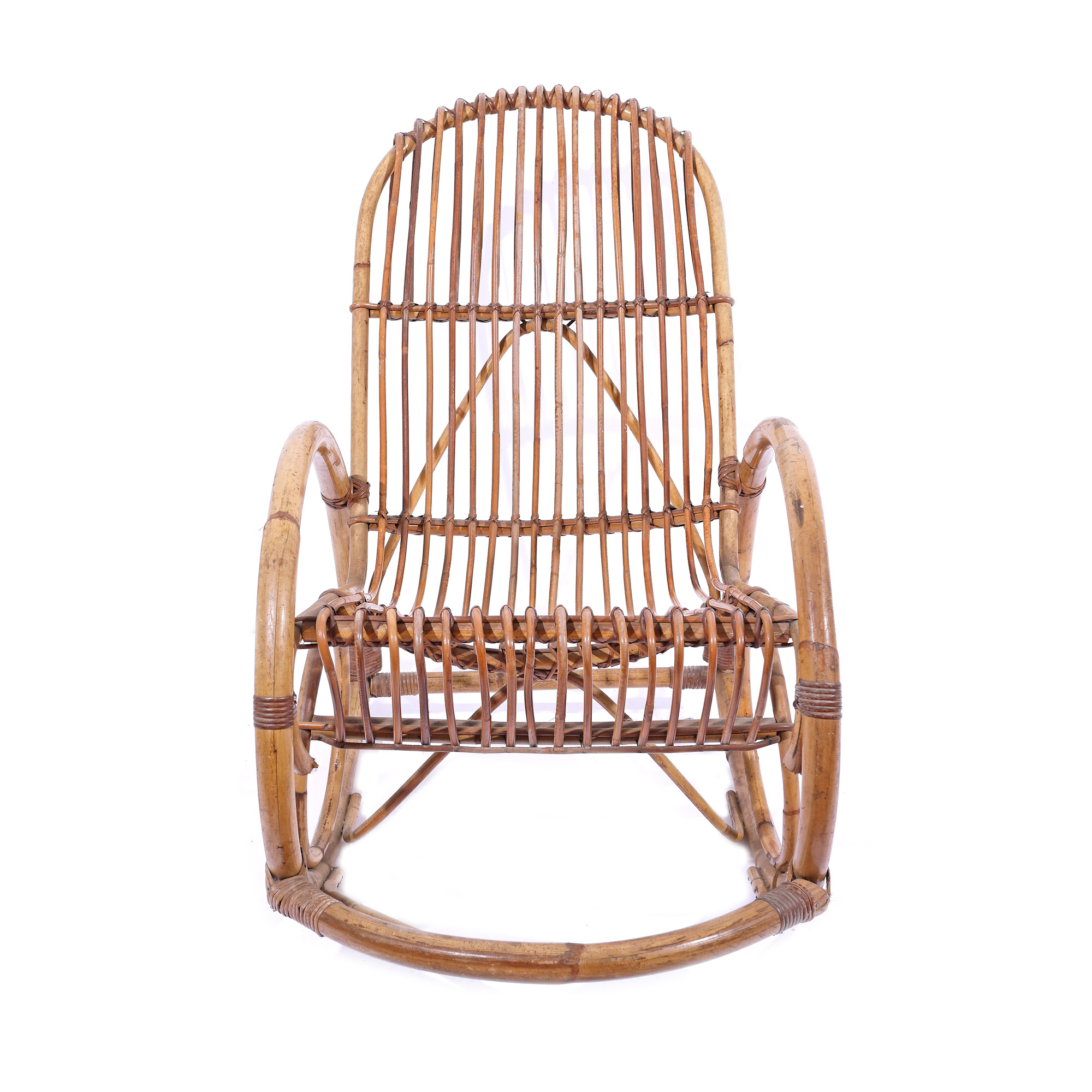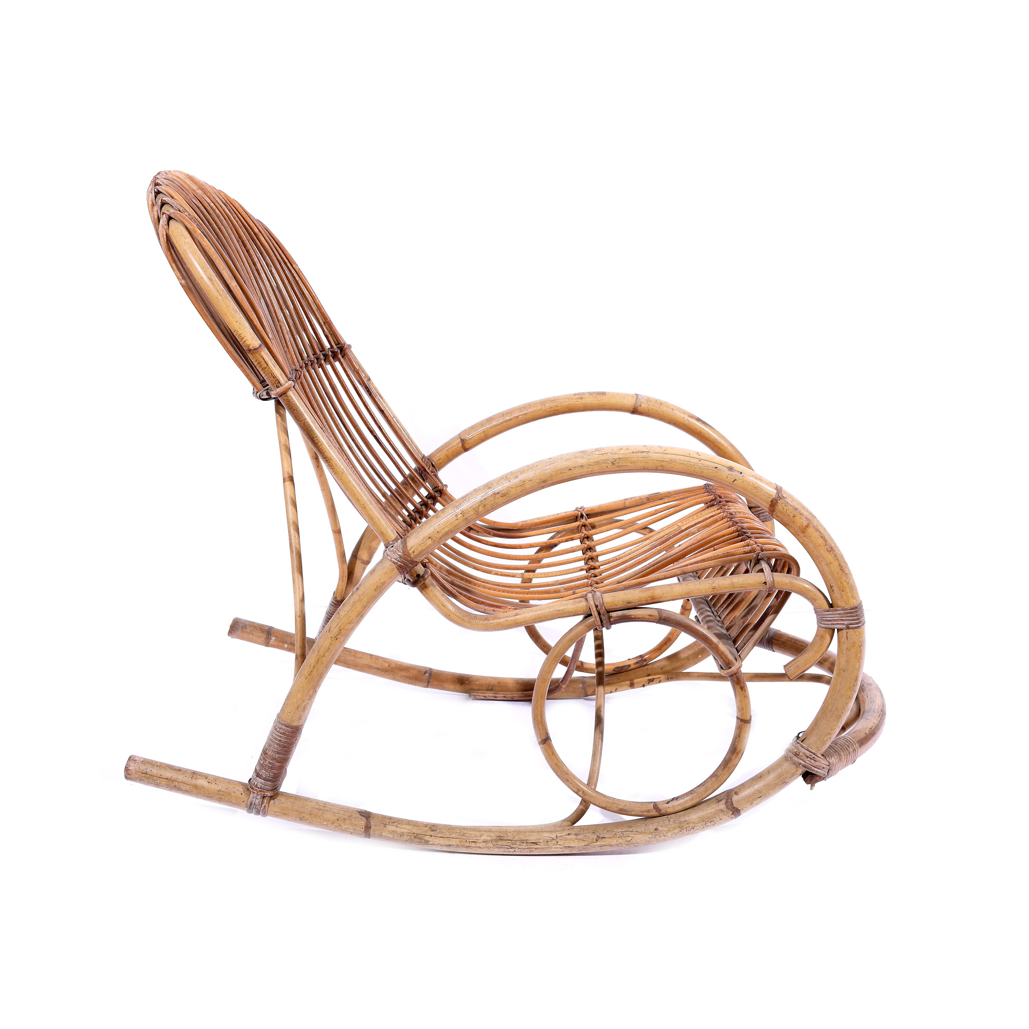 68. Balansoar Mid-Century din lemn de bambus și ratan, în maniera lui Franco Albini [Cca. 1950-1960]