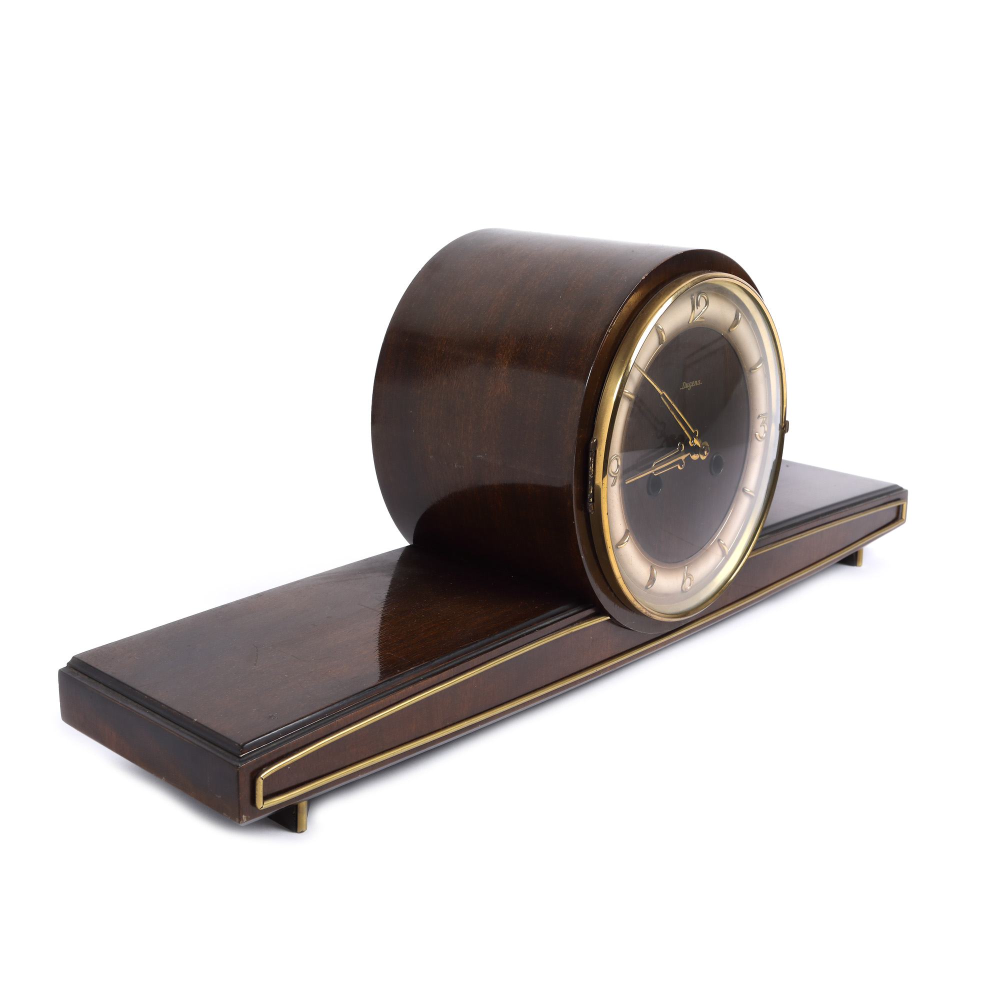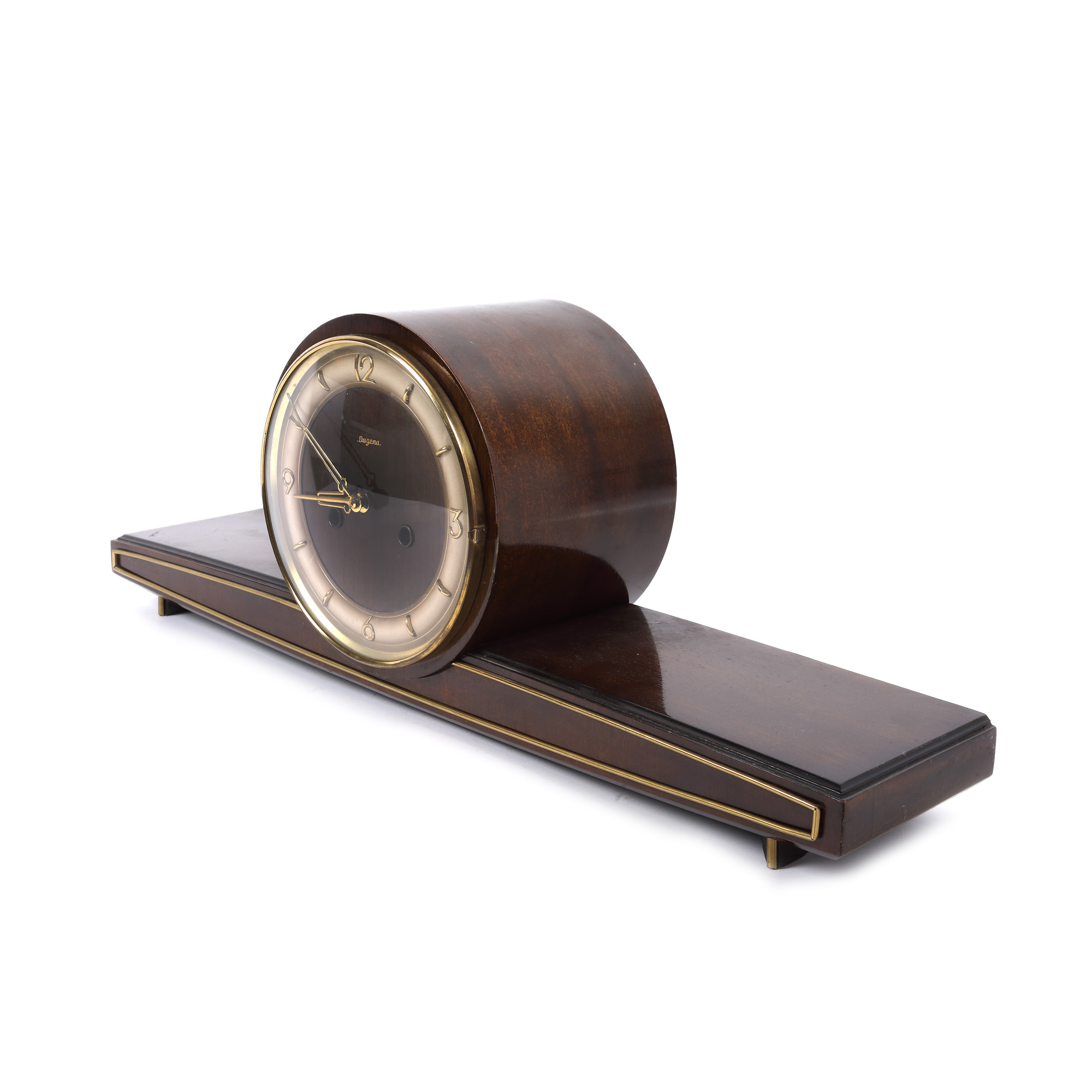 85. Ceas Dugena pentru birou, în manieră Art Deco, din lemn de trandafir [Cca. 1950]