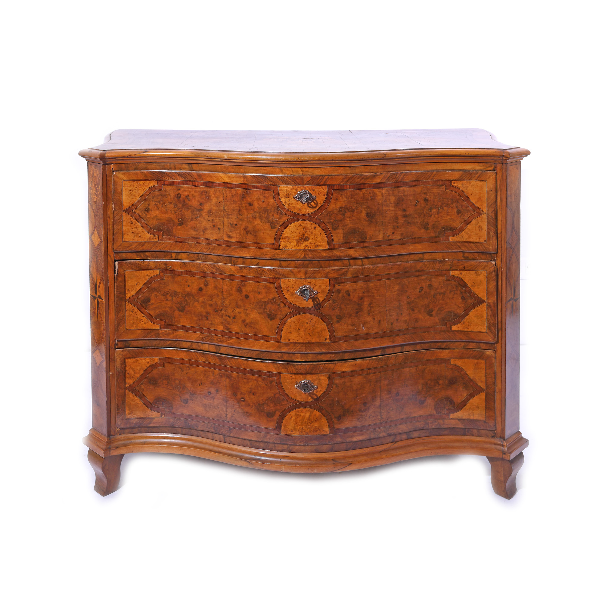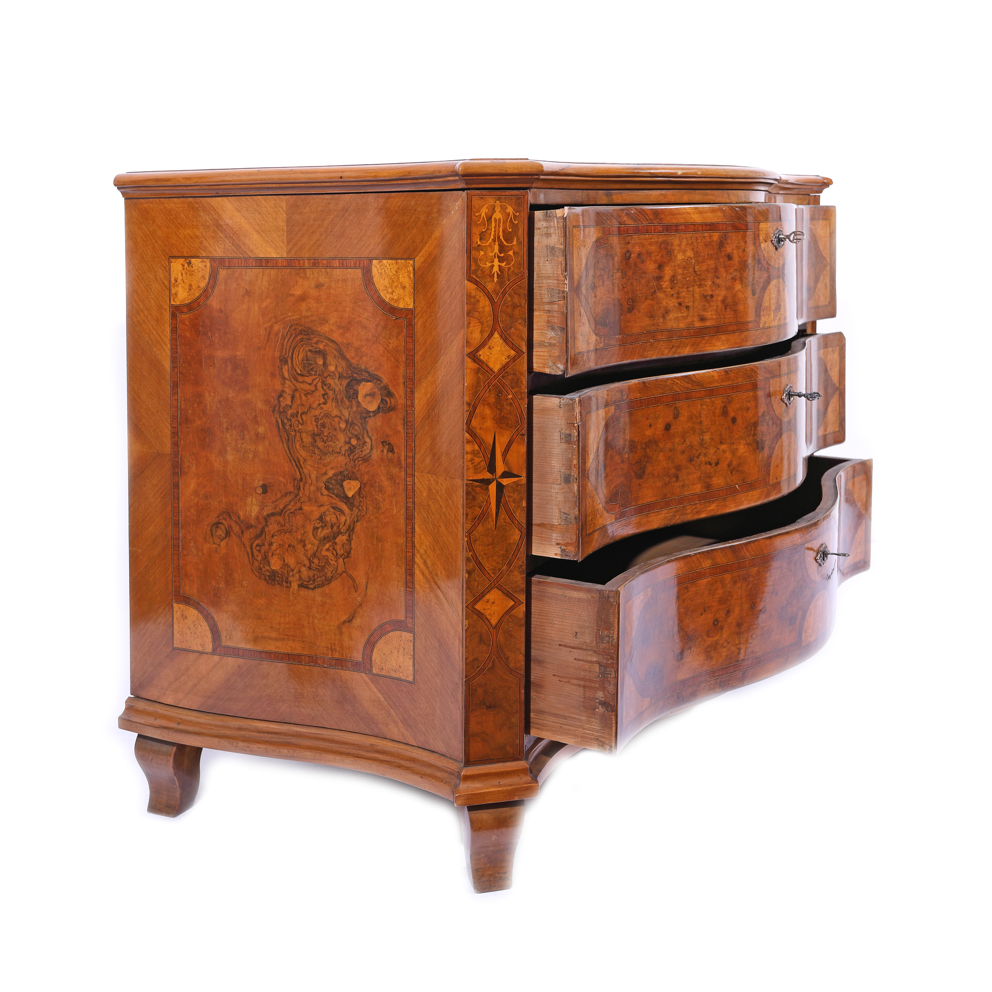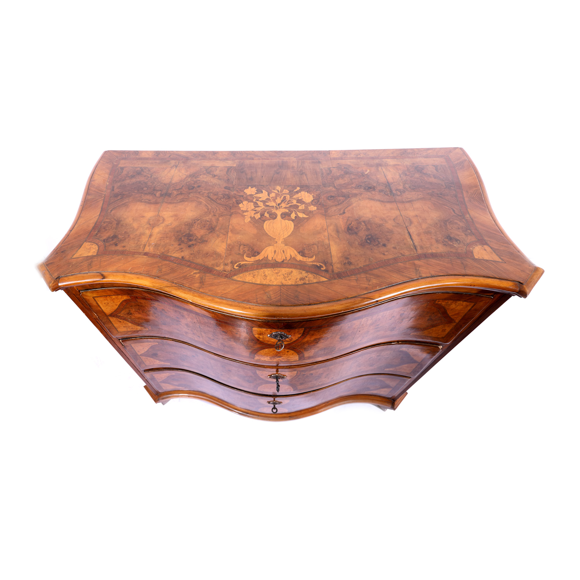 179. Comodă în stil Régence, decorată cu furnir din rădăcină de nuc, cca. 1890, provine din colecția Marinei Dimitropoulos