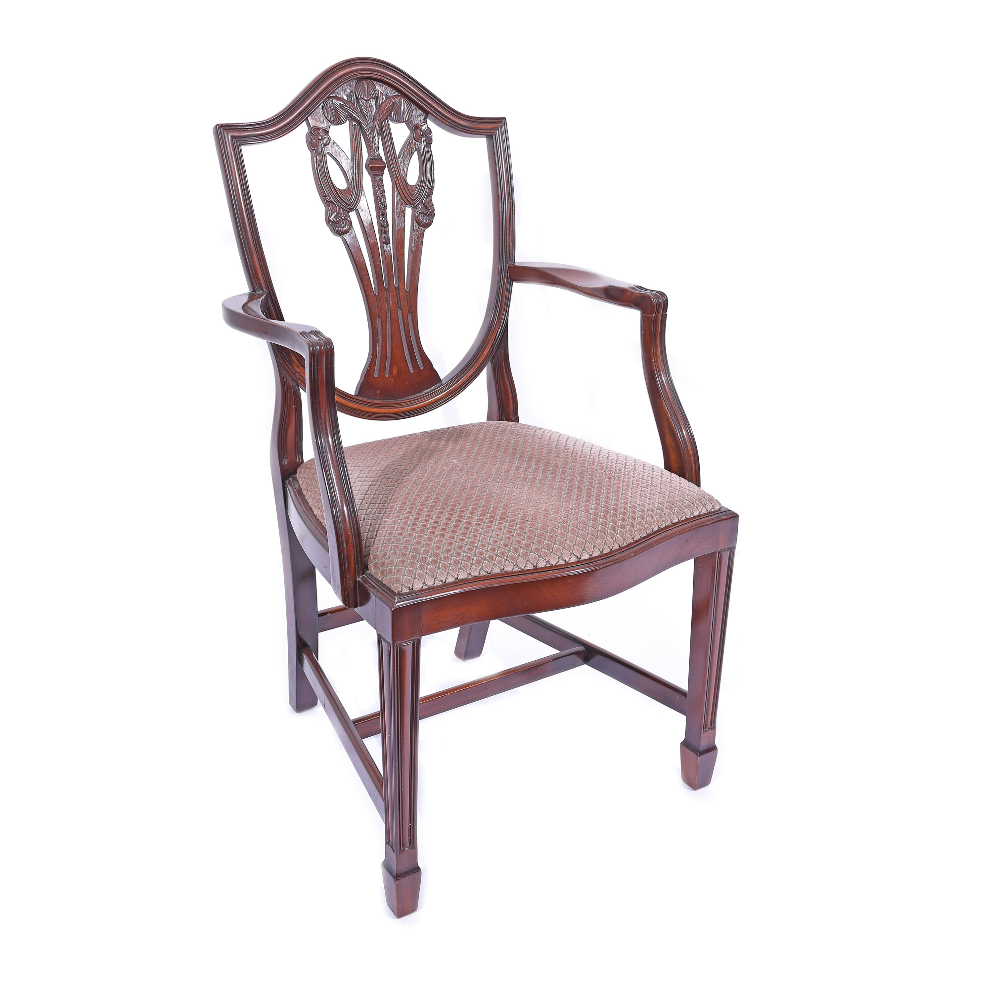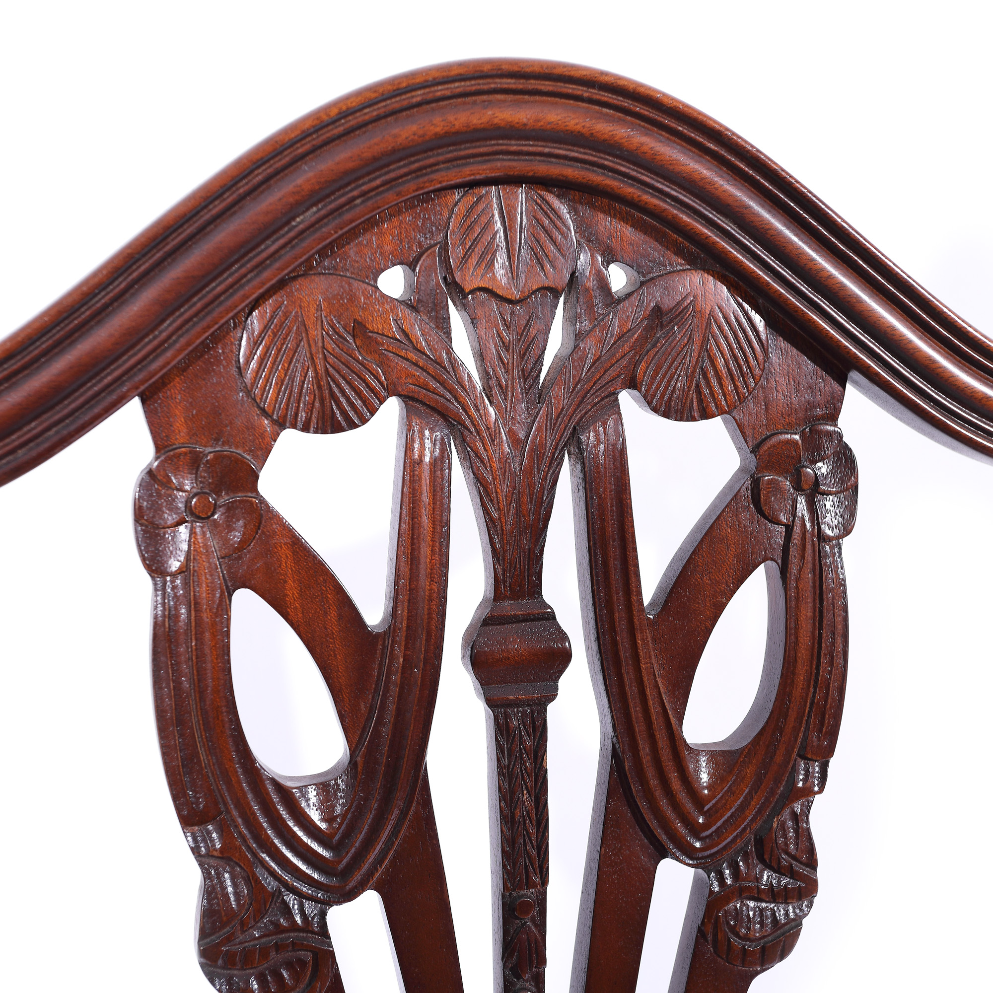 139. Garnitură în stil Edwardian, formată din două fotolii și două scaune, cu spătar floare de iris, cca. 1910-1915