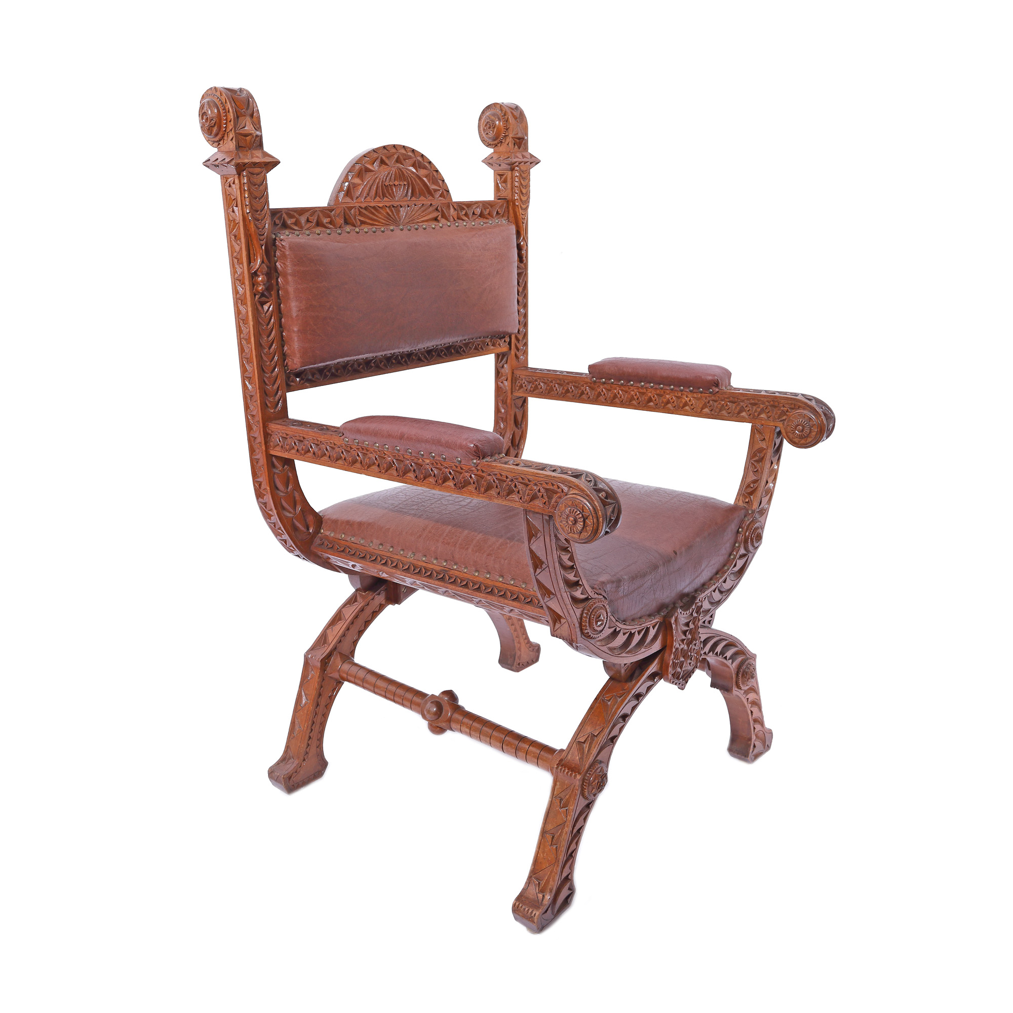 105. Jilț în maniera Renașterii Florentine, cu decor sculptat, sec. XIX