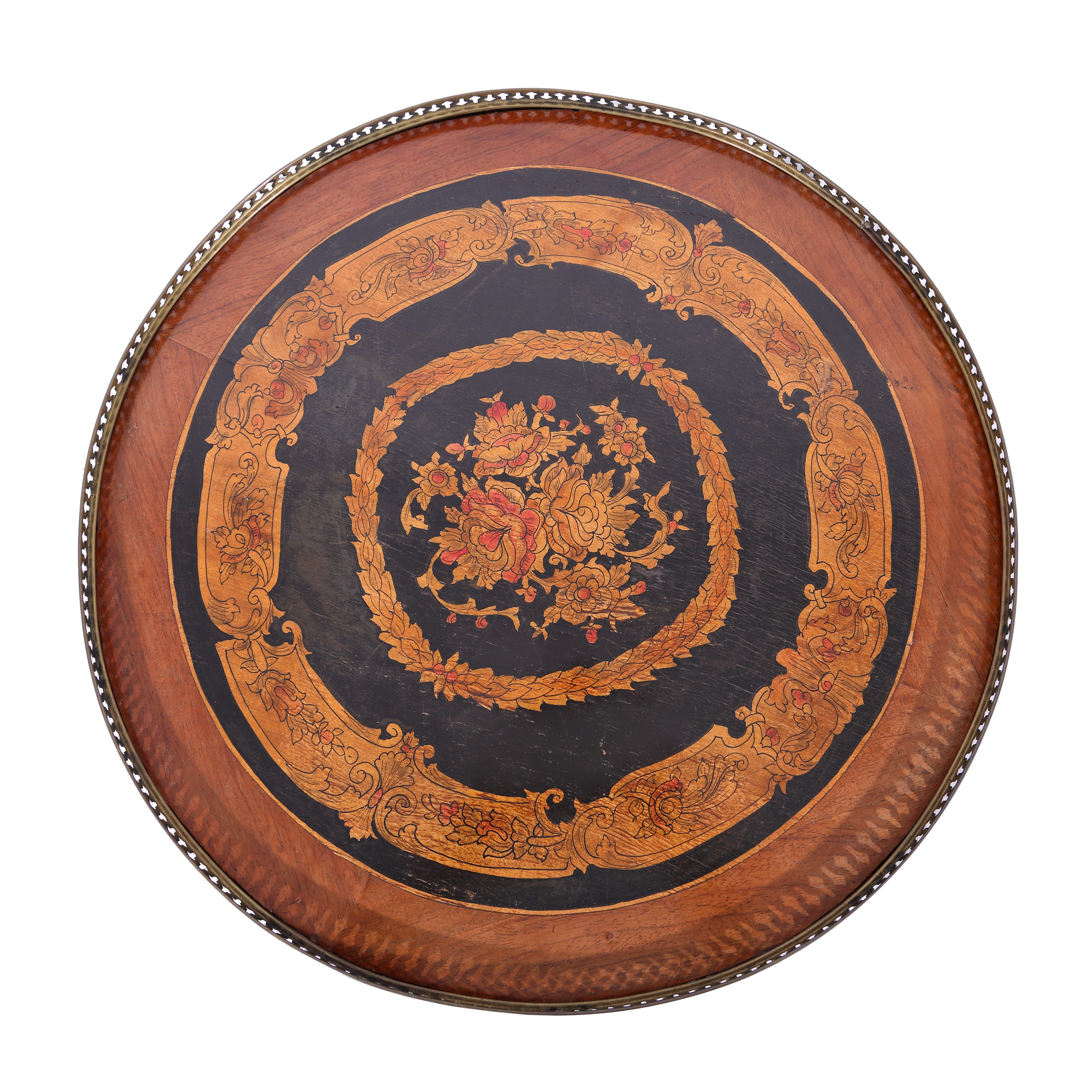 135. Masă în stil Louis XVI, decorată cu marchetărie florală și bronzuri, sfârșitul sec. XIX