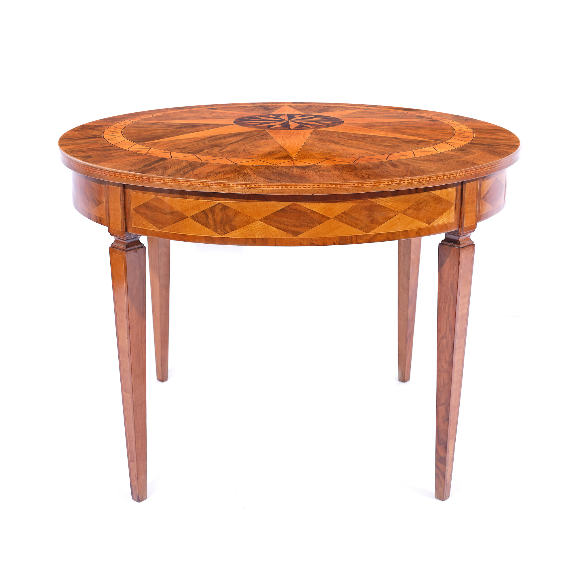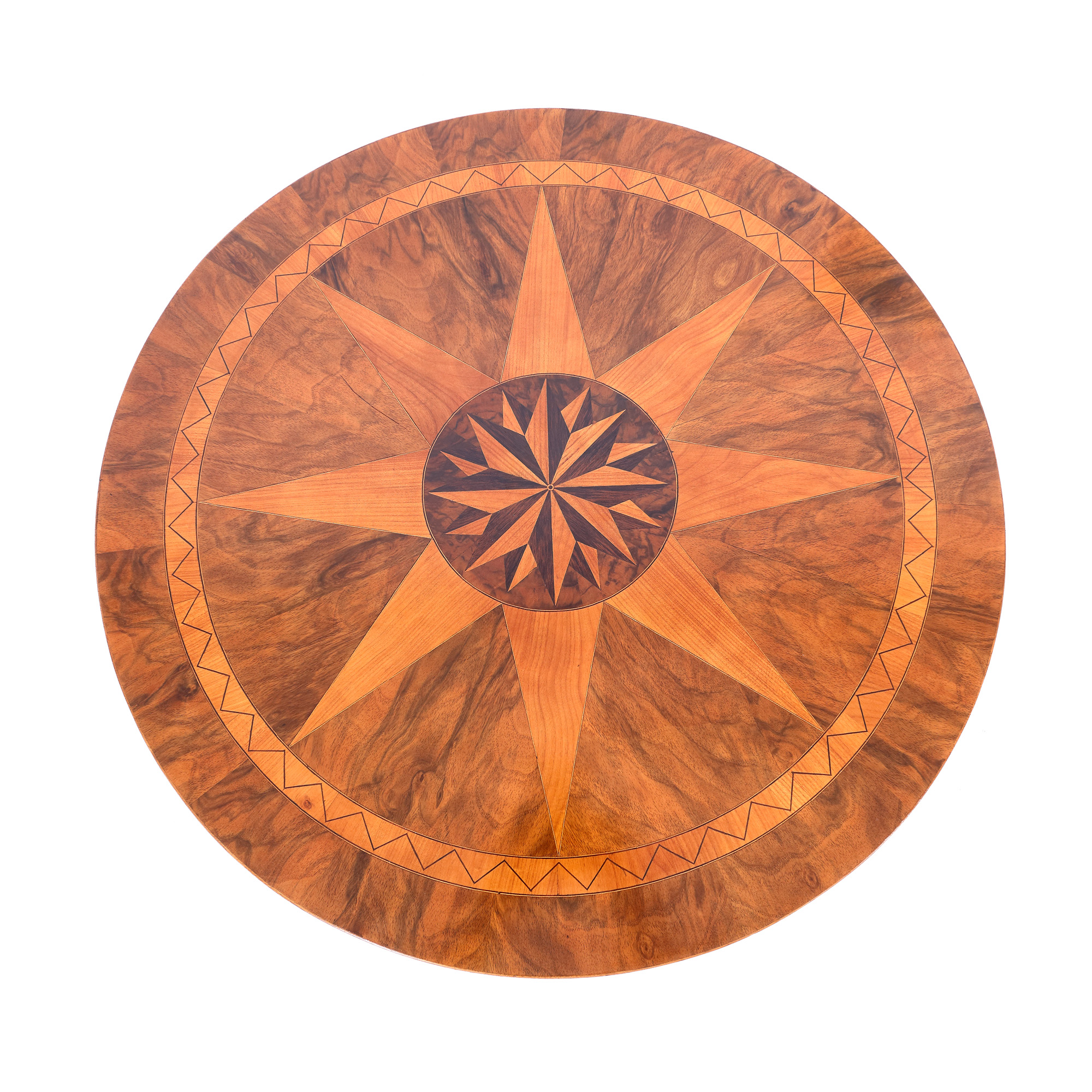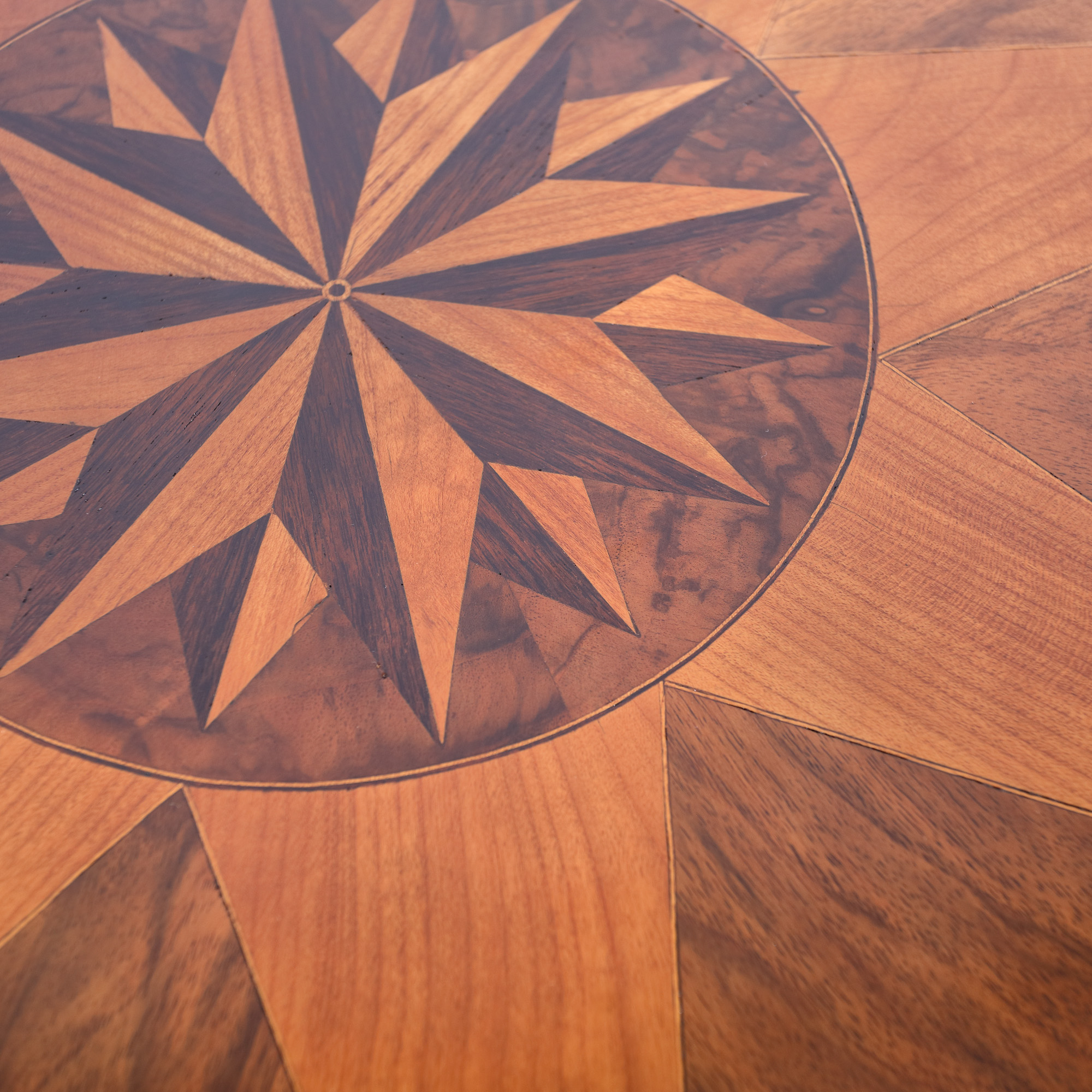 129. Masă pentru salon în manieră Charles X, decorată cu marchetărie în formă de stea, sfârșitul sec. XIX
