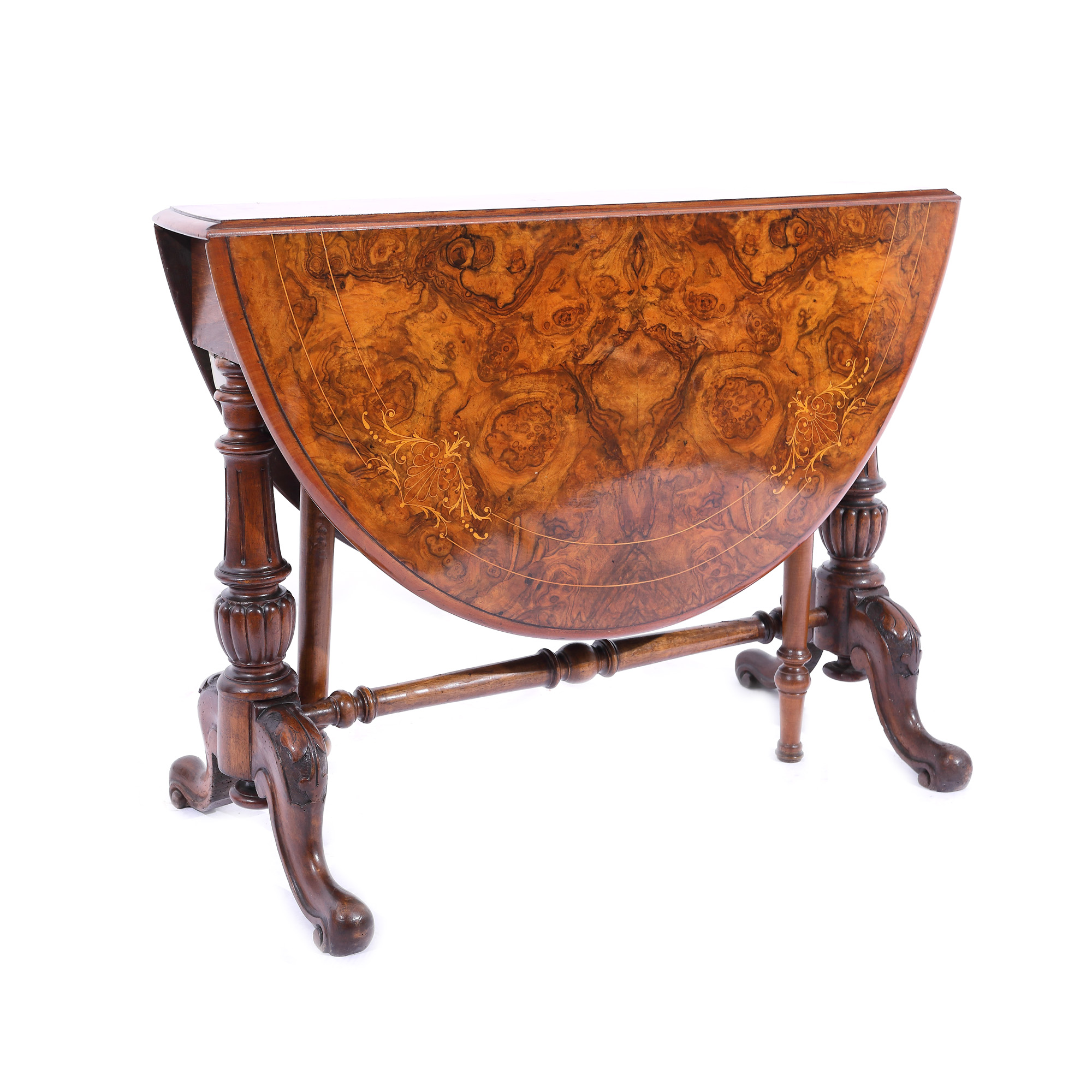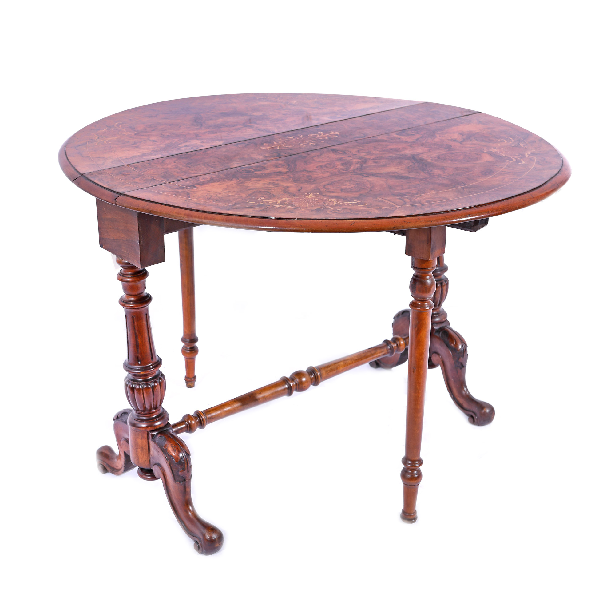 140. Masă pliabilă Victoriană, decorată cu furnir din rădăcină de nuc, cca. 1860-1870