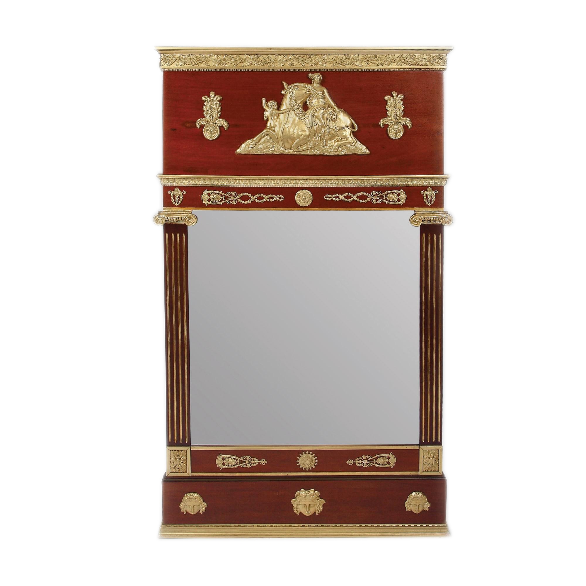 73. Monumentală oglindă în stil Empire, cu decor vegetal stilizat și scenă centrală "Răpirea Europei”, sec. XIX