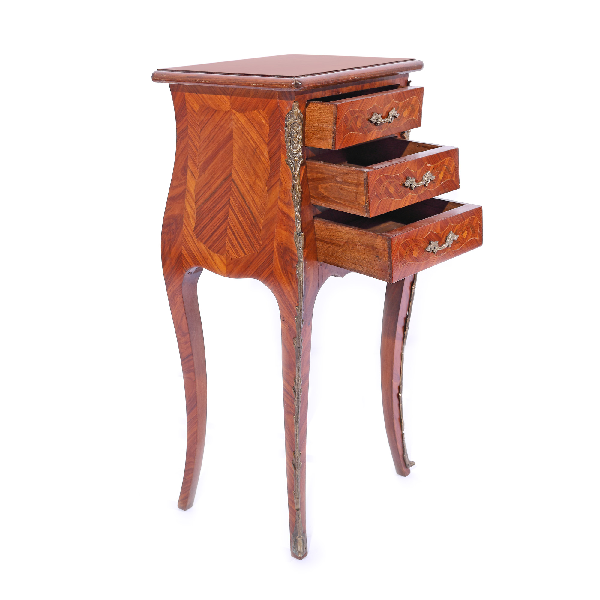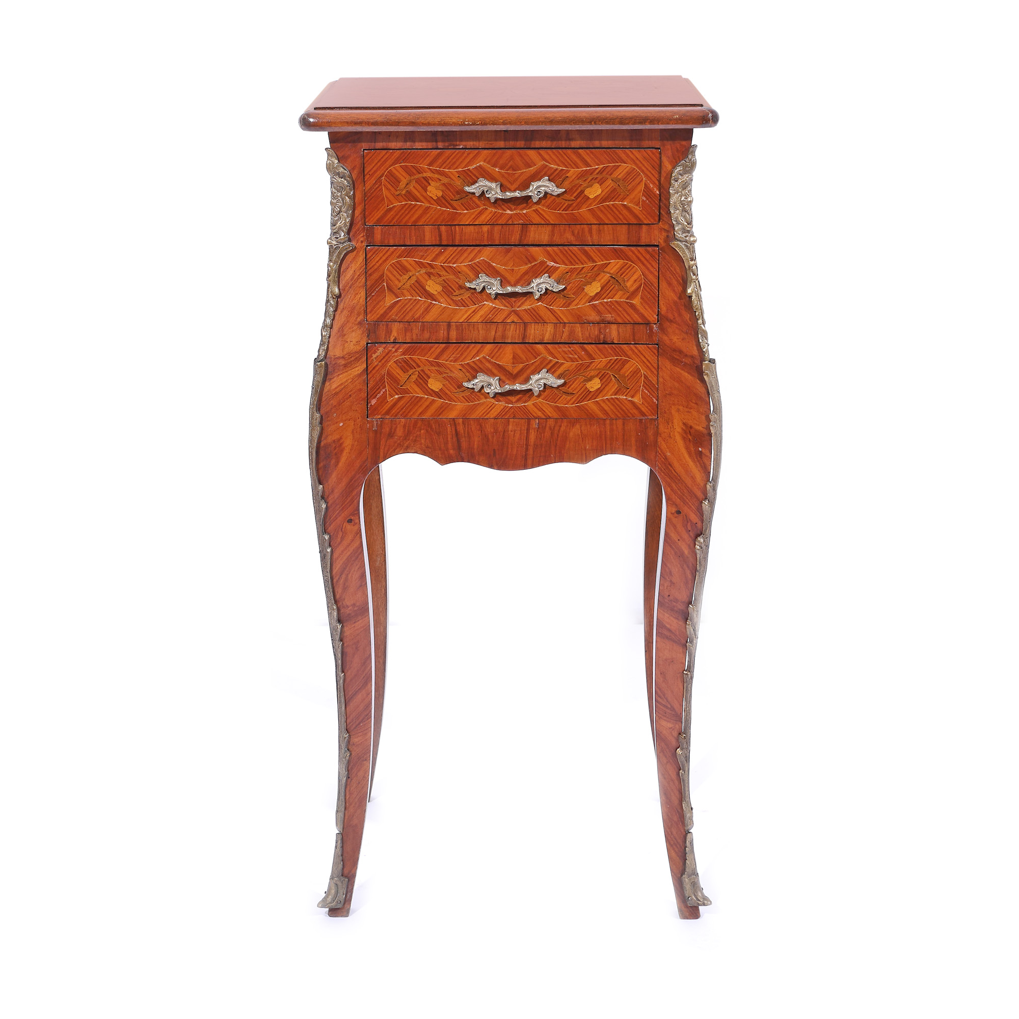 111. Noptieră cu trei sertare în stil Louis XV, începutul sec. XX, provine din colecția familiei prezentatorului Emanuel Isopescu