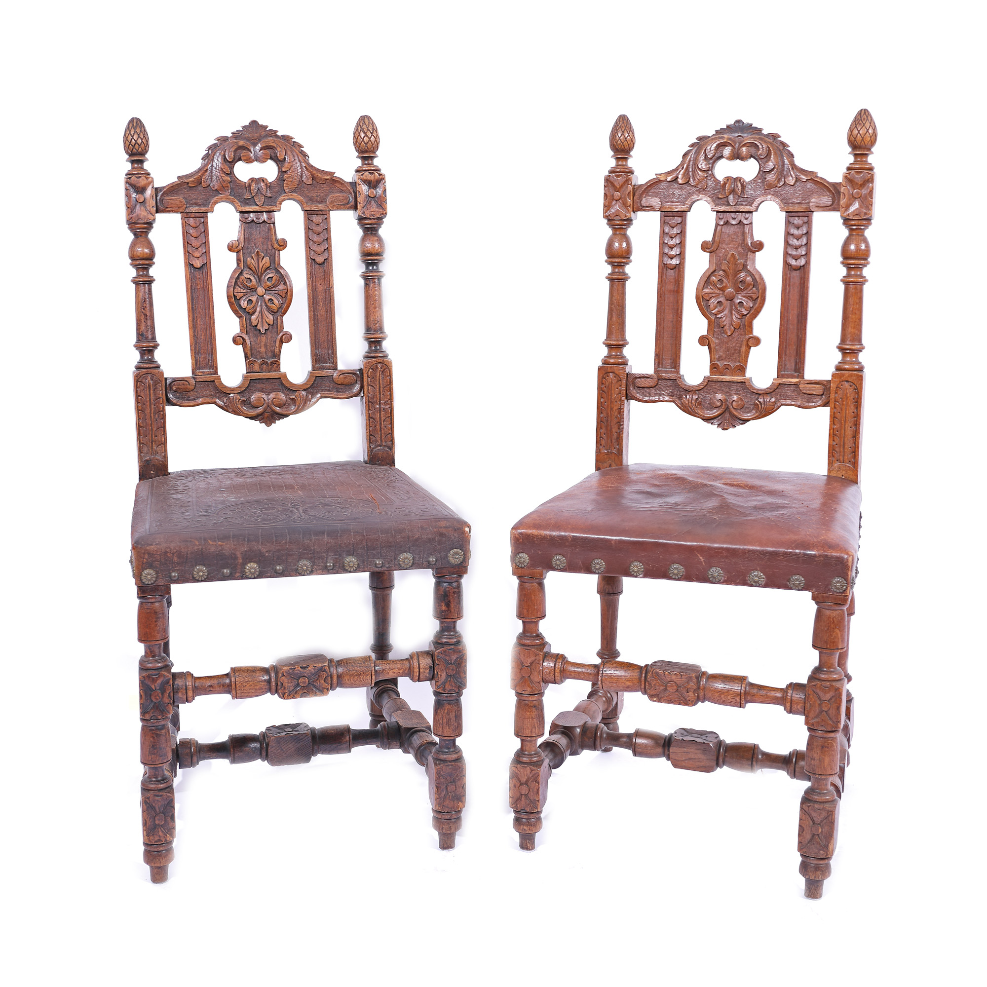 120. Pereche de scaune în stil Historist, cu șezut din piele, cca. 1890-1900, provine din colecția Prințului Ghyka