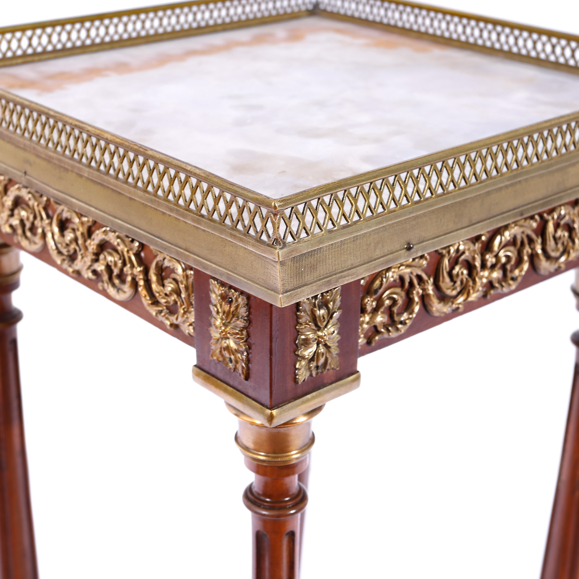 175. Piedestal în manieră Louis XVI, cu blat din marmură și decorațiuni din bronz, cca. 1900