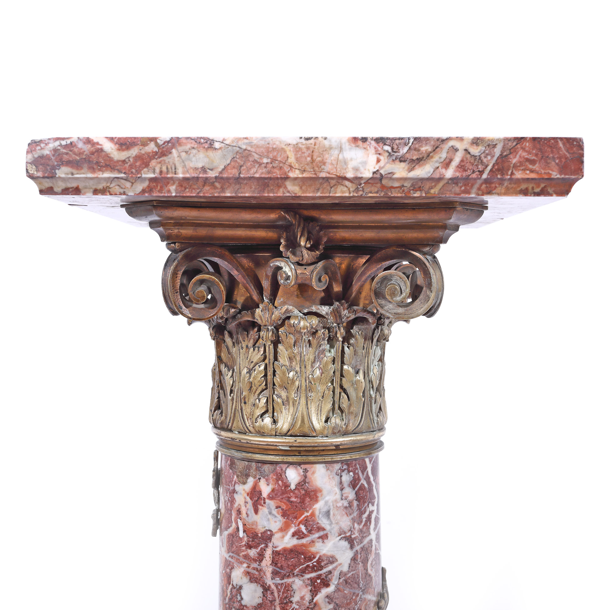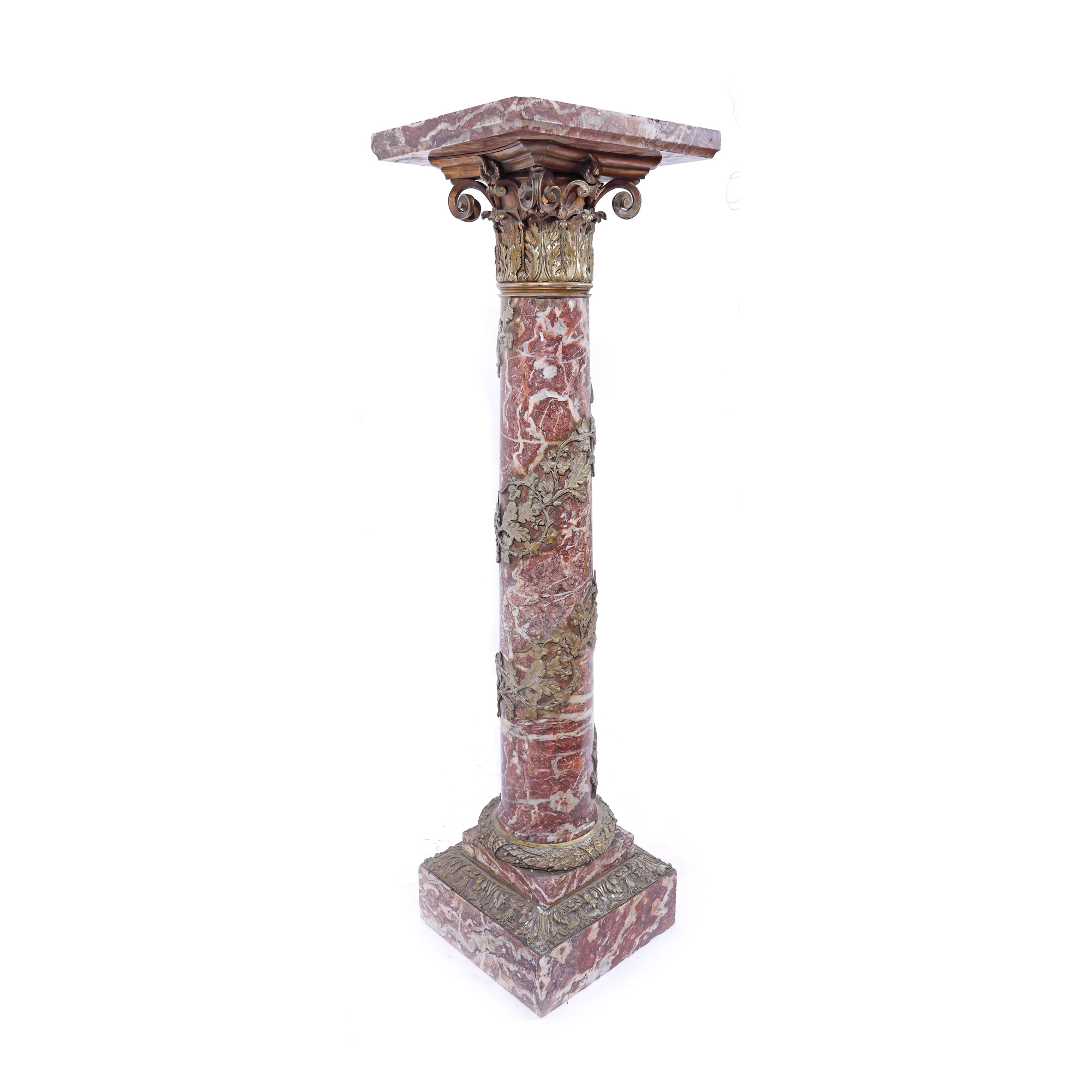 116. Piedestal în stil Napoleon III din marmură, decorat cu capitel corintic și ghirlande din bronz, cca. 1850, provine din colecția Marinei Dimitropoulos