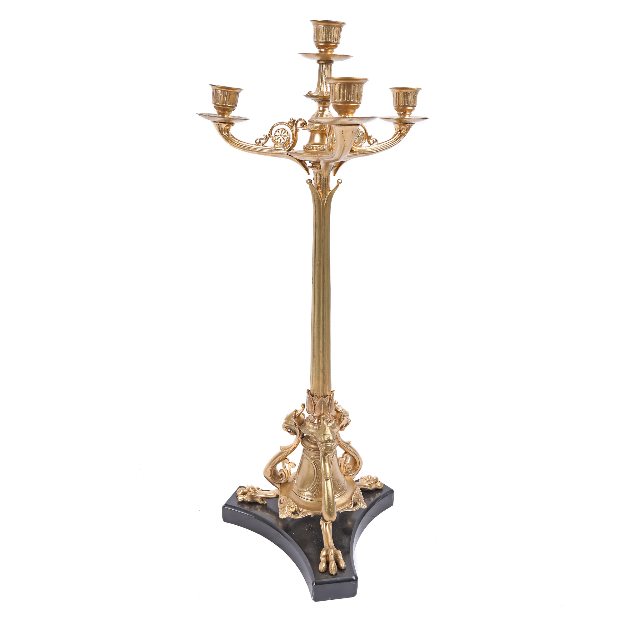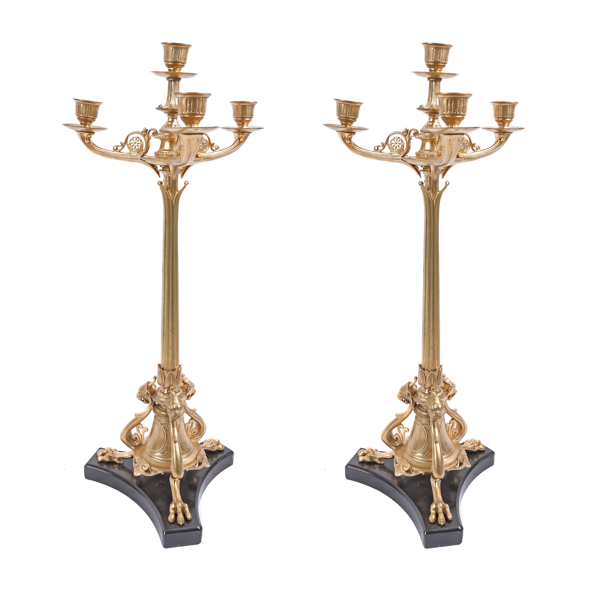 96. Rară pereche de sfeșnice Empire din bronz aurit și granit negru, autor Pierre Philippe Thomire, cca. 1810