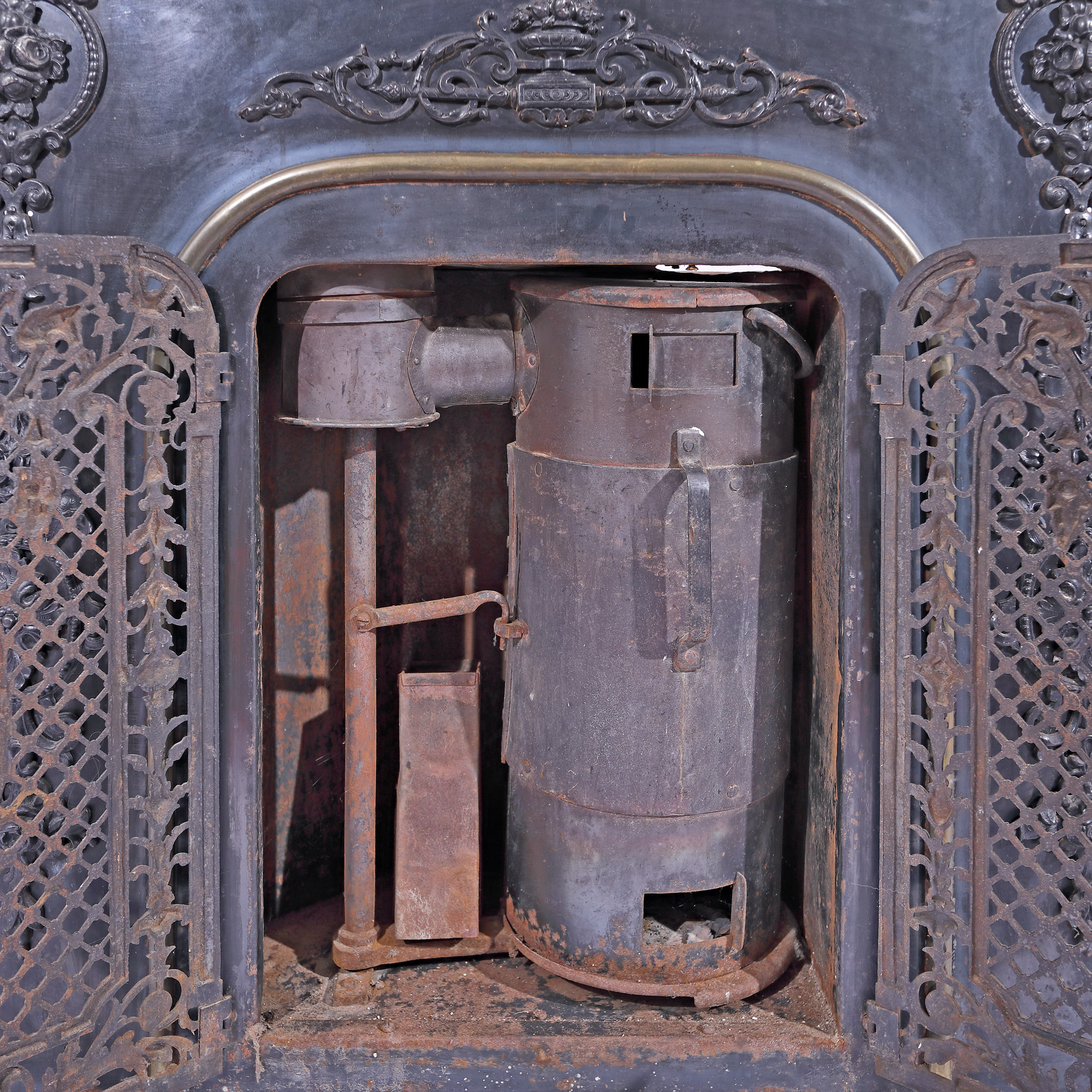 71. Șemineu în stil Neo-Rococo, cu bogat decor florar și uși grilajate, sfârșitul sec. XIX