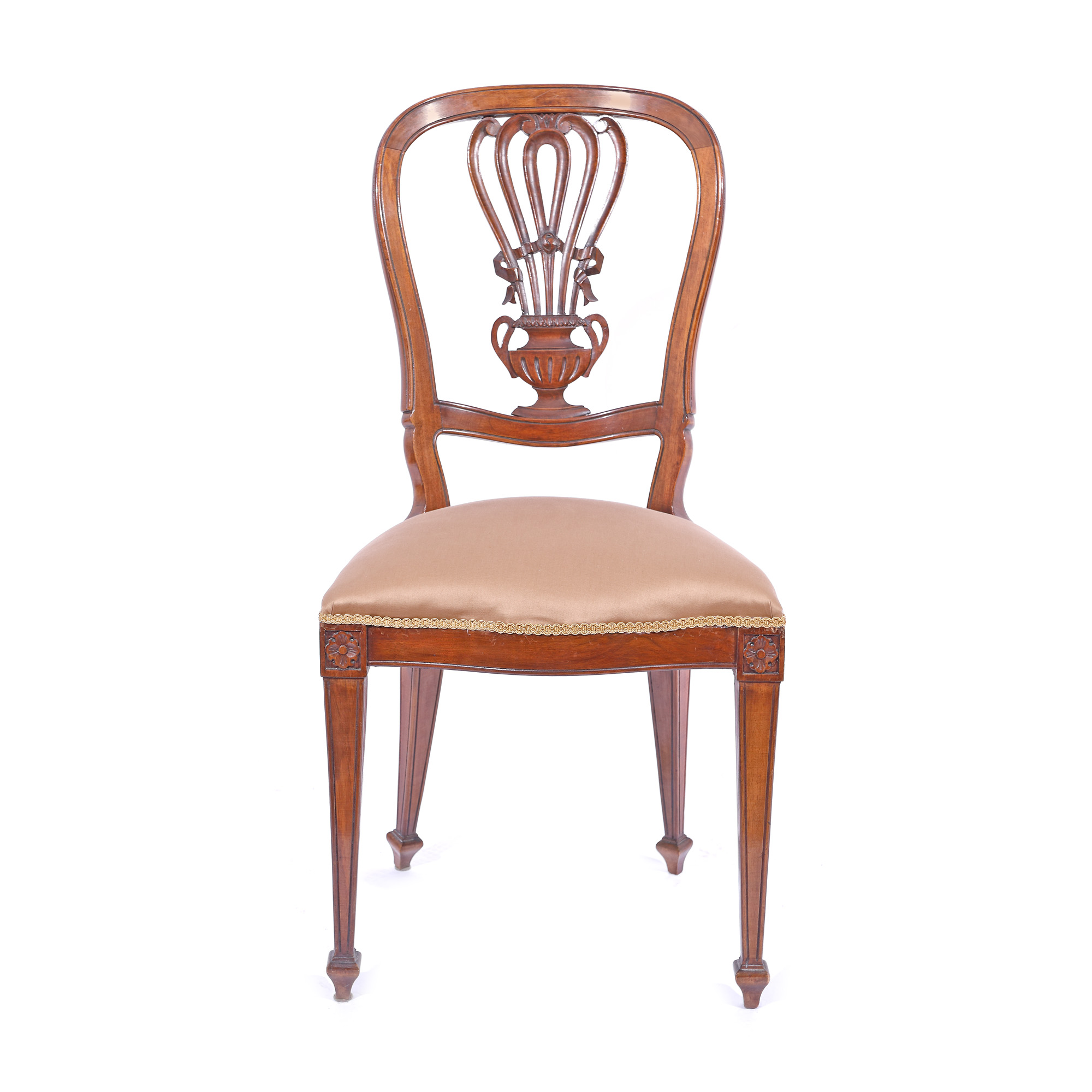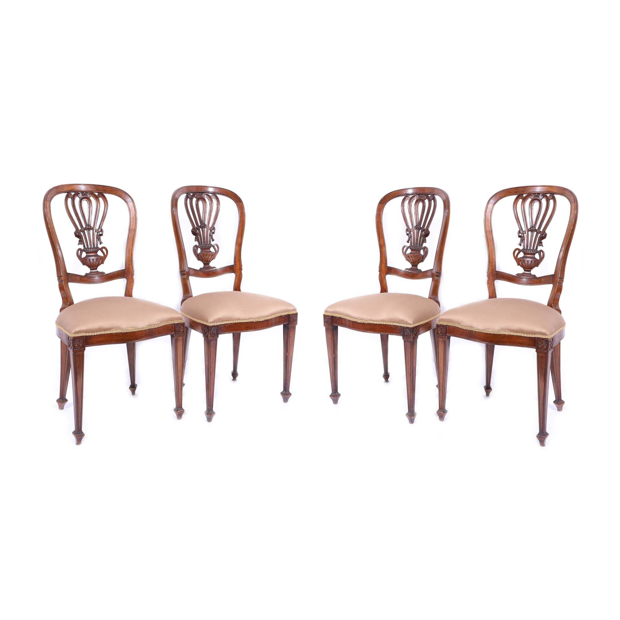 191. Set de patru scaune în manieră Louis Philippe, cu spătar decorat cu amforă stilizată, prima jumătate a sec. XX