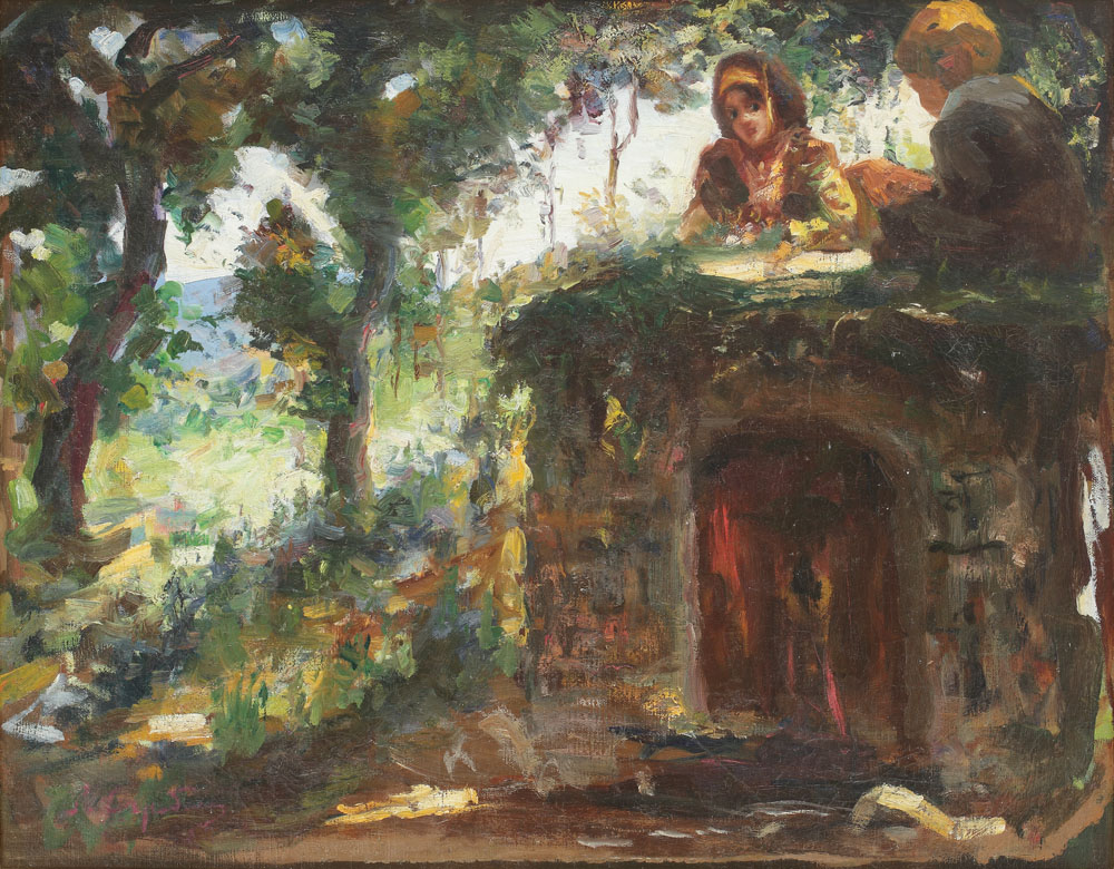 semnat stânga jos, cu violet, P. Capidan