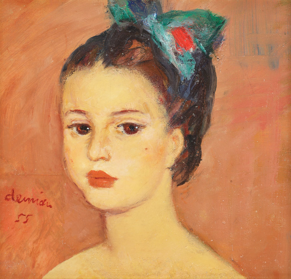 semnat şi datat stânga jos, cu roşu, demian, (19)55
