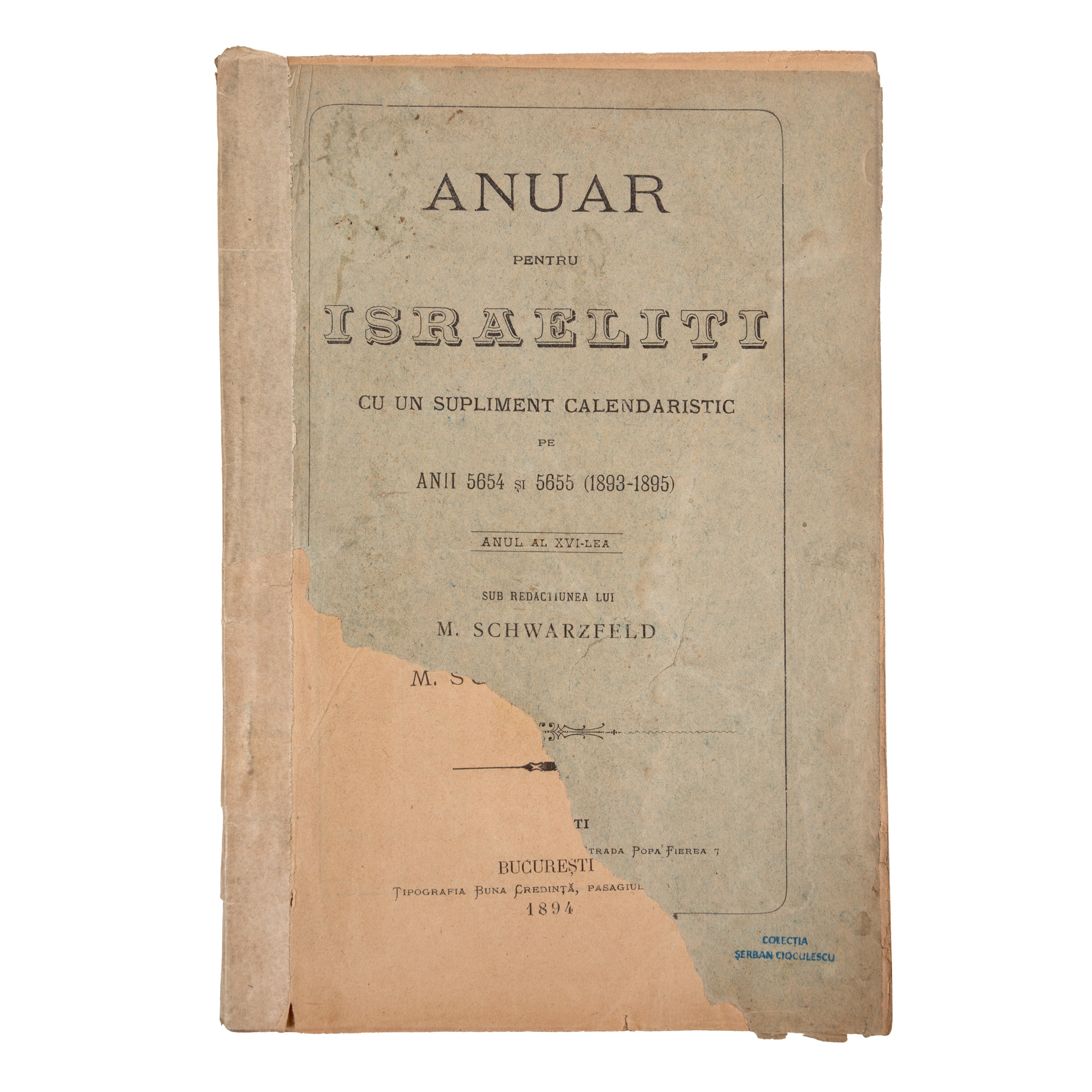 147. "Anuar pentru israeliți", București, 1894, provine din colecția criticului literar Șerban Cioculescu