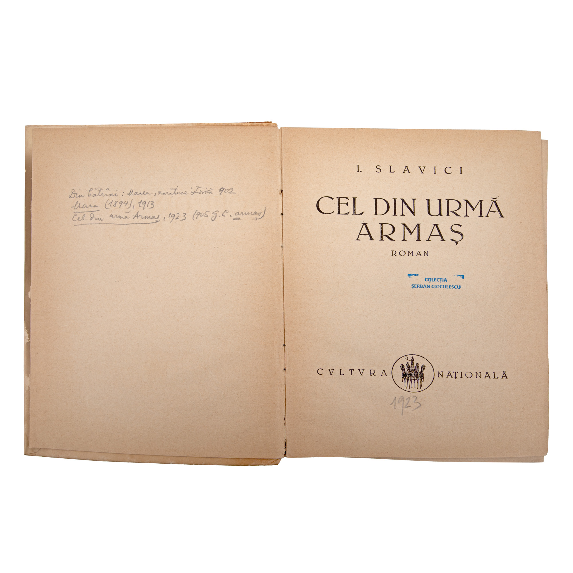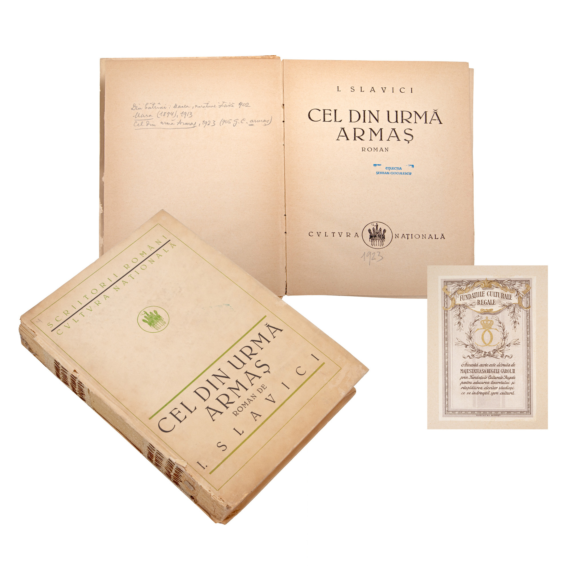 178. "Cel din urmă armaș", de Ioan Slavici, București, 1923, cu ex-libris-ul Fundațiilor Culturale Regale, provine din colecția criticului literar Șerban Cioculescu