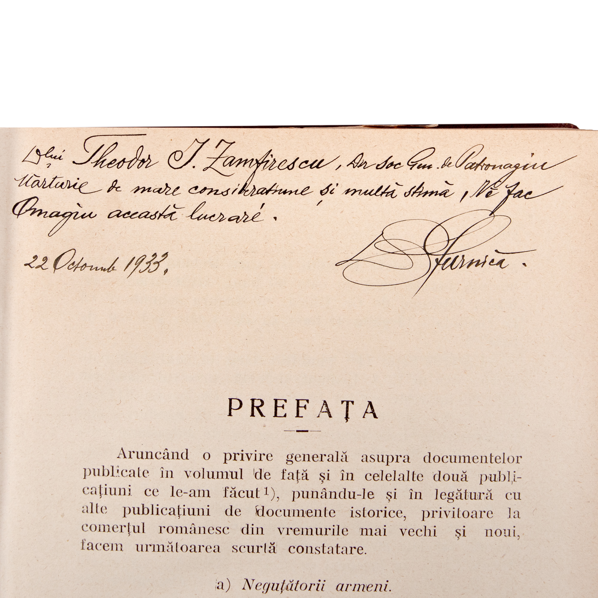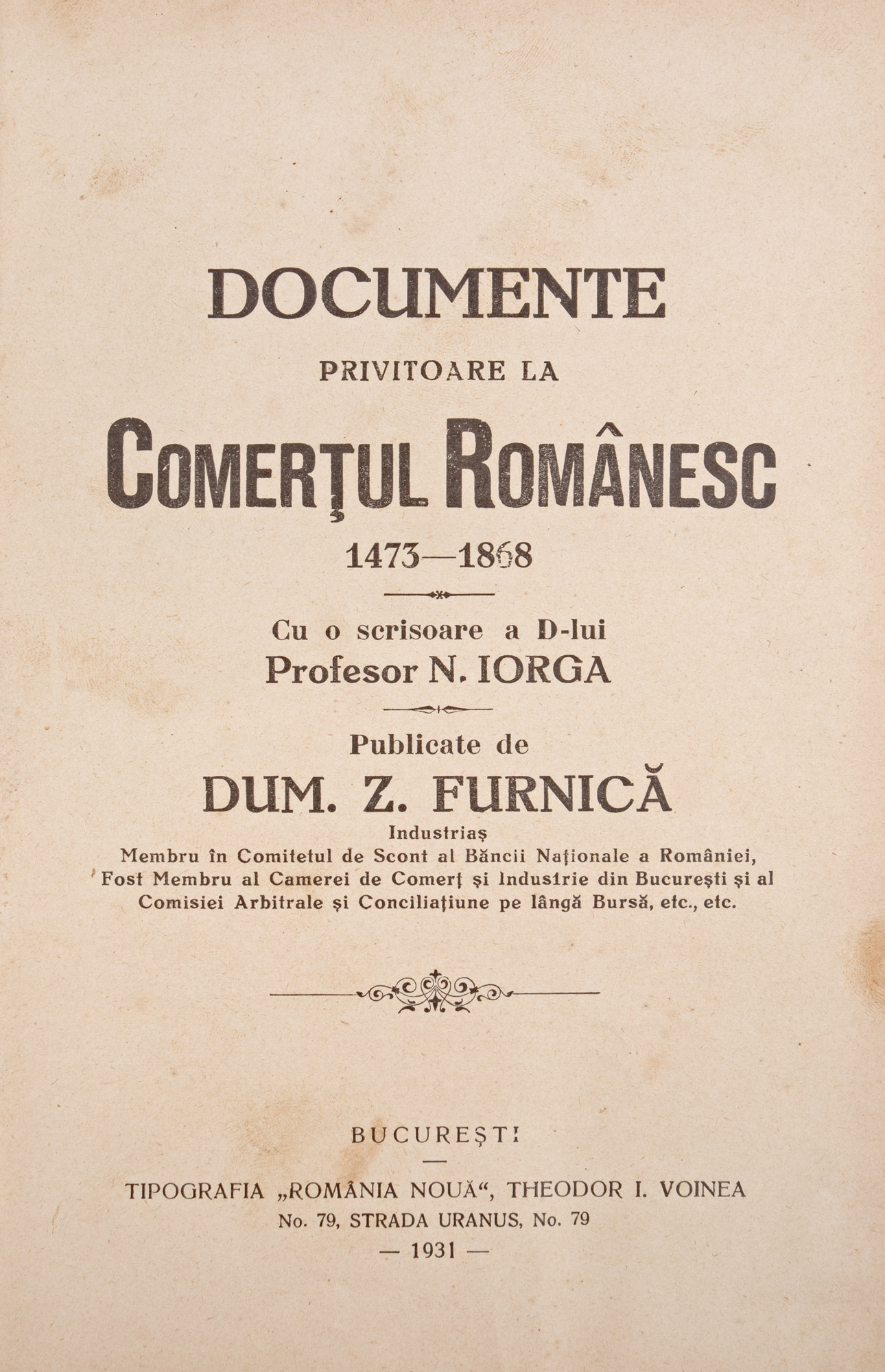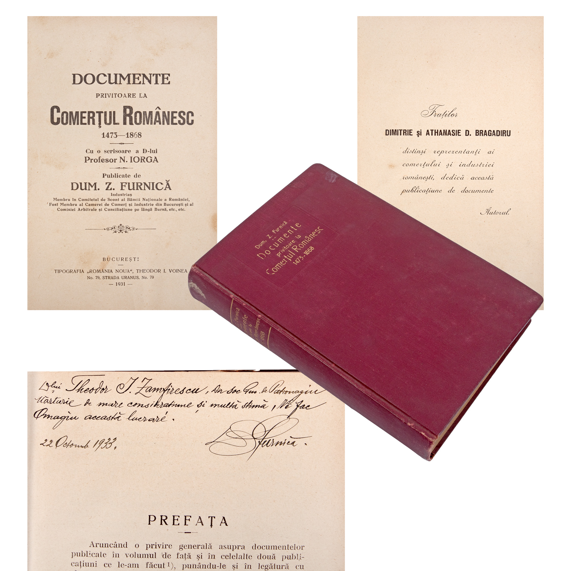 50. "Comerțul Românesc", de Dumitru Z. Furnică, București, 1931, cu dedicația olografă a autorului