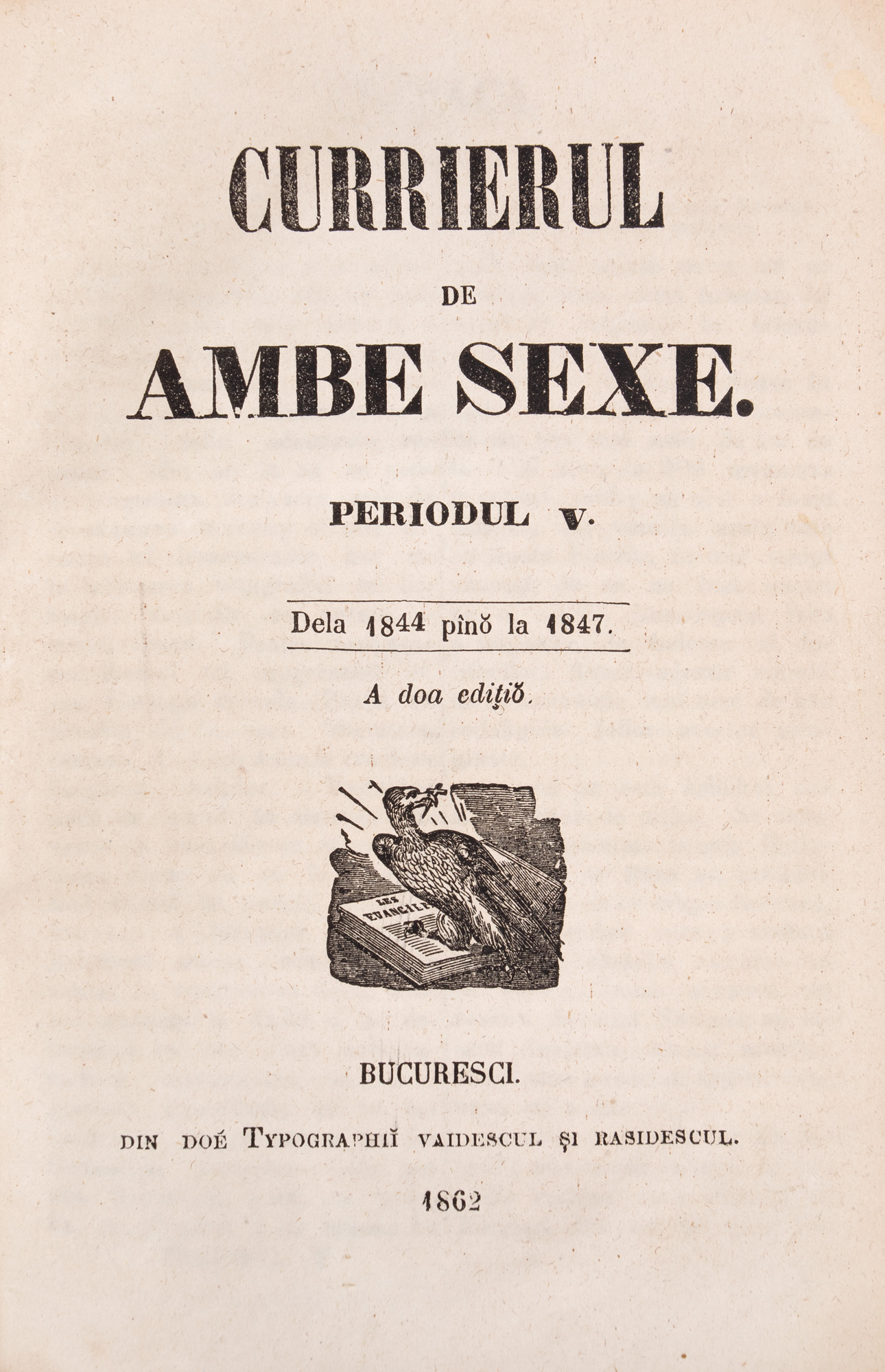Revista editată de Ioan Heliade Rădulescu "Curier de ambe sexe" este prezentă în forma ediției a doua din 1862, astfel: vol I de la 1836 până la 1838, vol. II de la 1838 la 1840, vol. III de la 1840 la 1842, vol. IV de la 1842 la 1844 și vol. V de la 1844 până la 1847. Alături de volumul V este colegată lucrarea publicată de Eliade în 1862 la București, "Crucea de argint".