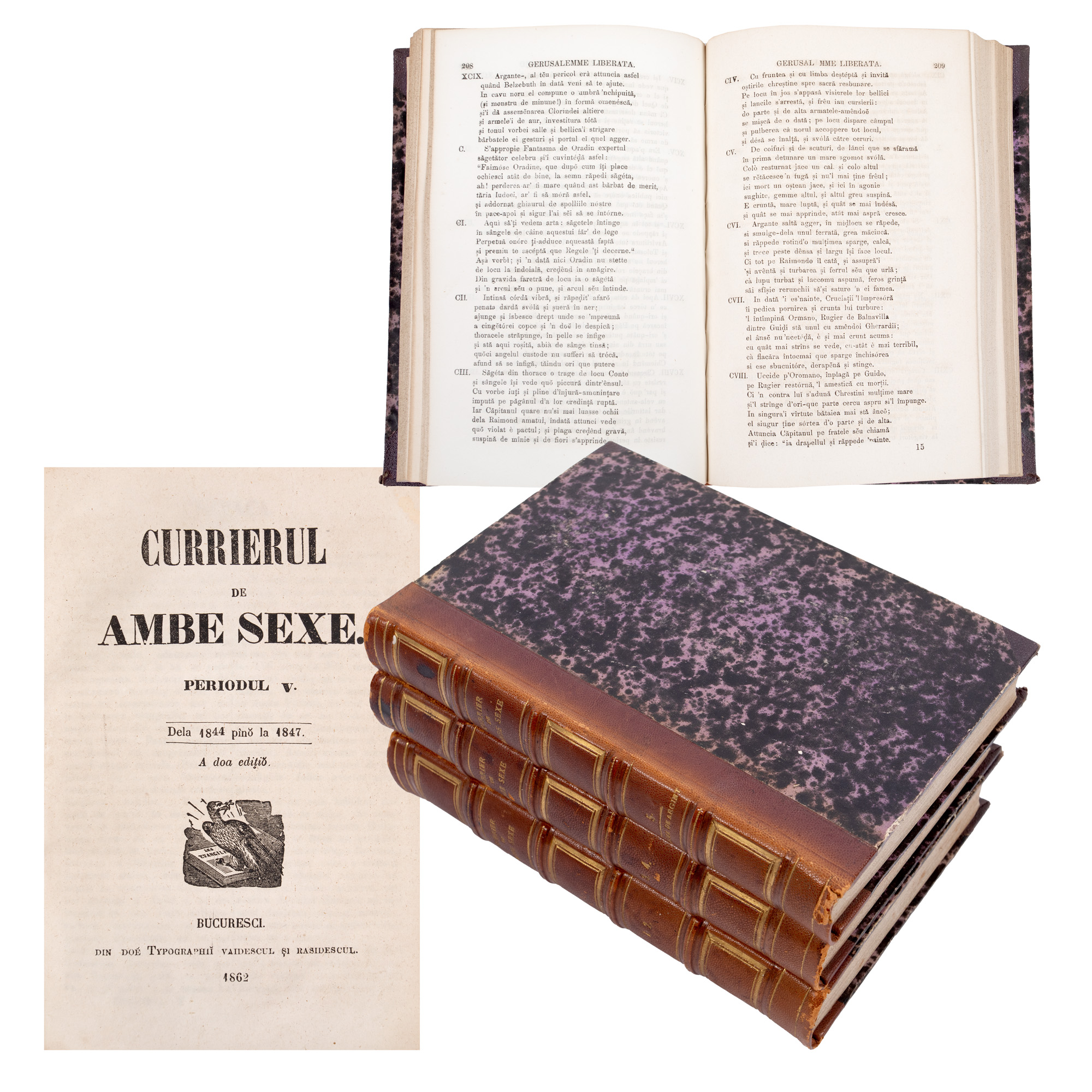 163. "Curier de ambe sexe", trei volume, București, 1862, colegat cu "Crucea de argint", tradusă de Ion Heliade Rădulescu, București, 1858