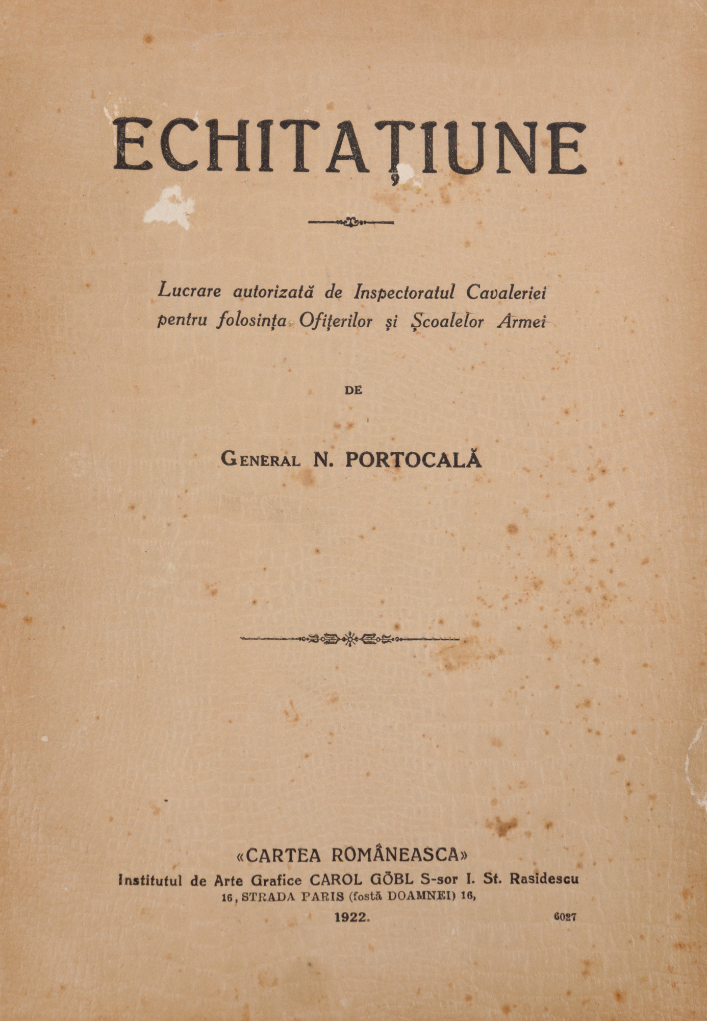195. ”Echitațiune”, de General N. Portocală, București, 1922
