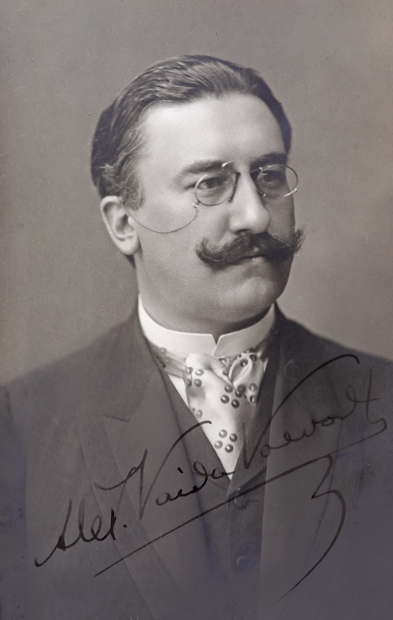 127. Fotografie ilustrându-l pe omul politic transilvănean Alexandru Vaida-Voevod, atelier fotografic Carl Pietzner, cu semnătură olografă
