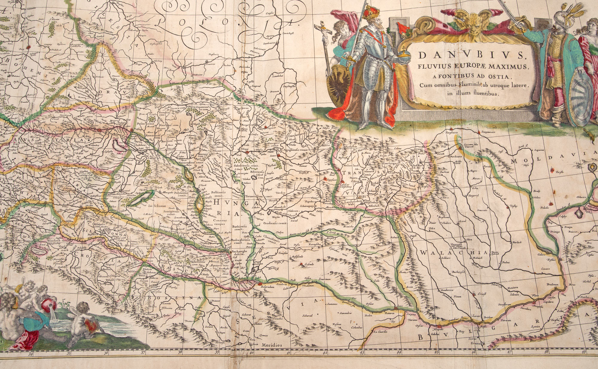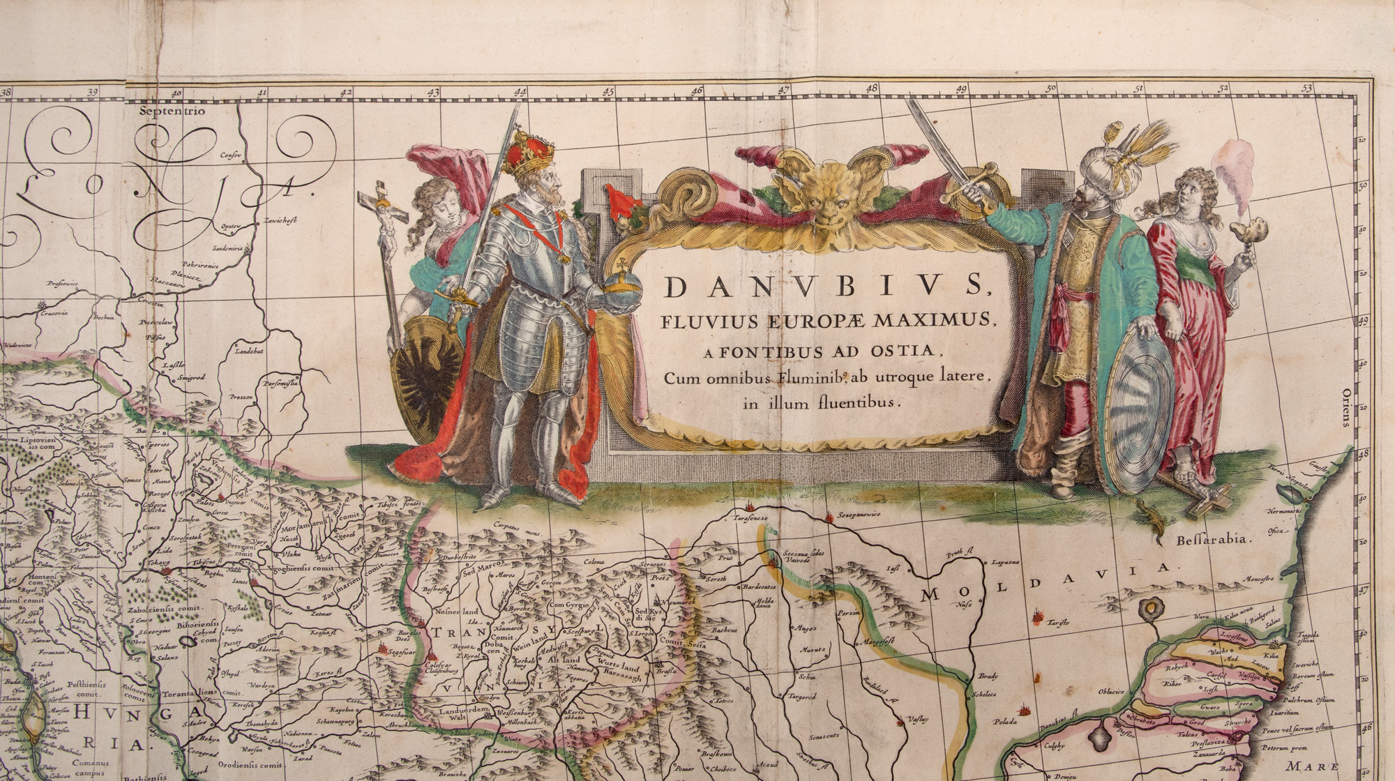 72. Hartă ”Cursul și Delta Dunării”, de Jan Janssonius, Amsterdam, cca. 1638, piesă rară, de colecție