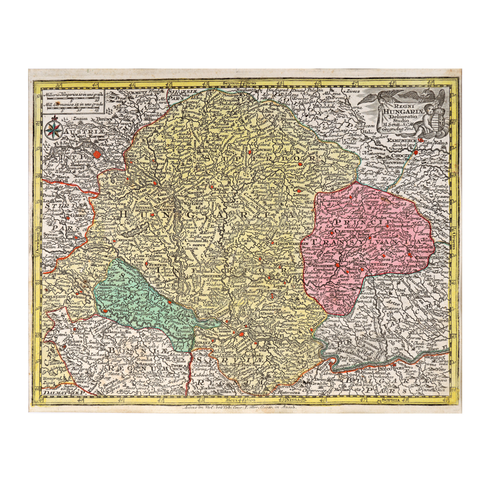 76. Hartă ”Regatul Ungariei”, de Matthäus Seutter, Augsburg, 1744