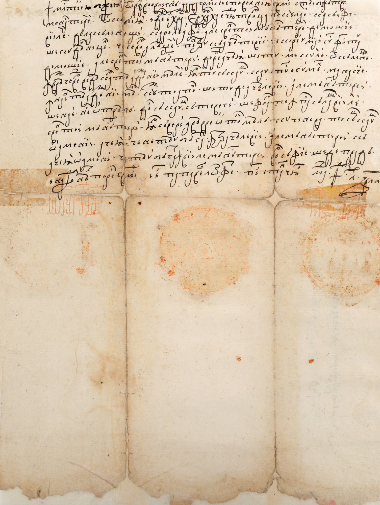 62Т. Hrisov emis în cancelaria domnitorului Țării Românești, Radu Mihnea, caligrafiat de Stanciul, la data de 9 mai 1623, probabil cu semnătura olografă a domnitorului în chinovar, piesă rară, de colecție