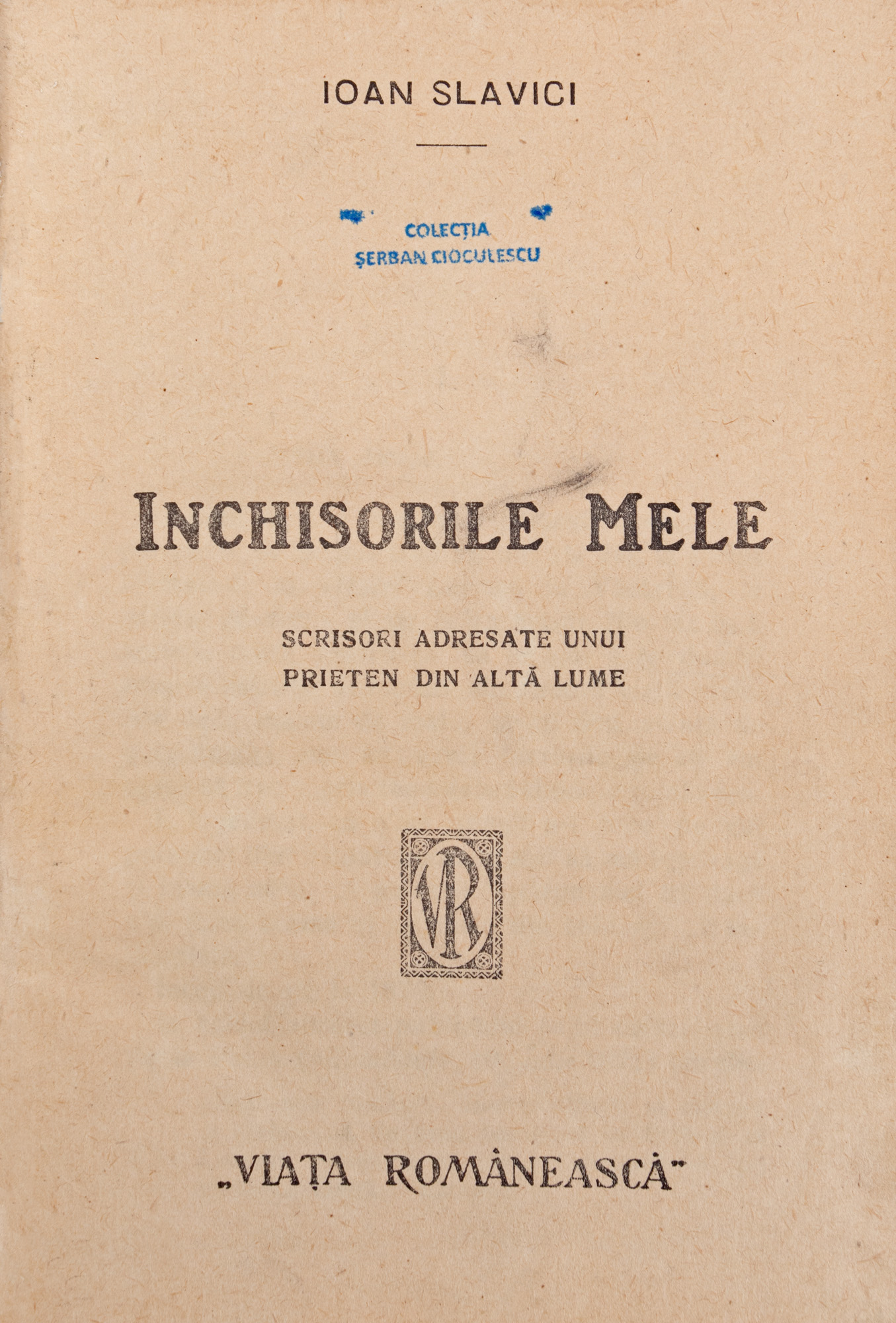 177. "Închisorile mele", de Ioan Slavici, București, 1920, cu ex-libris, provine din colecția criticului literar Șerban Cioculescu