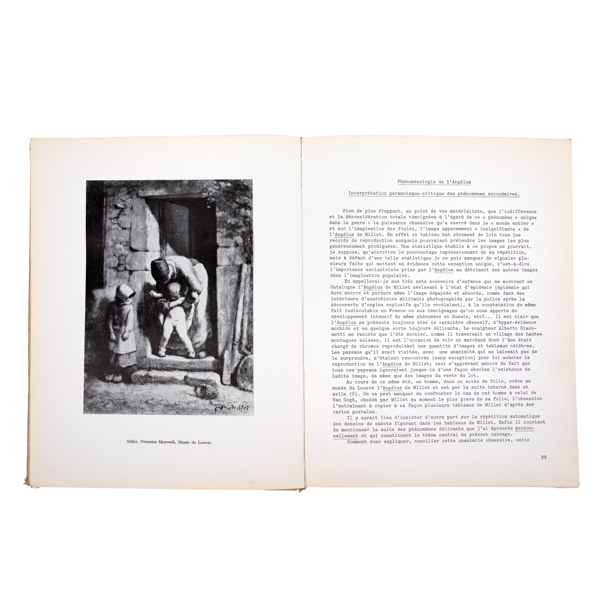 152. "Le mythe tragique de L'Angélus de Millet", de Salvador Dalí, în limba franceză, Paris, 1963, provine din colecția criticului literar Șerban Cioculescu