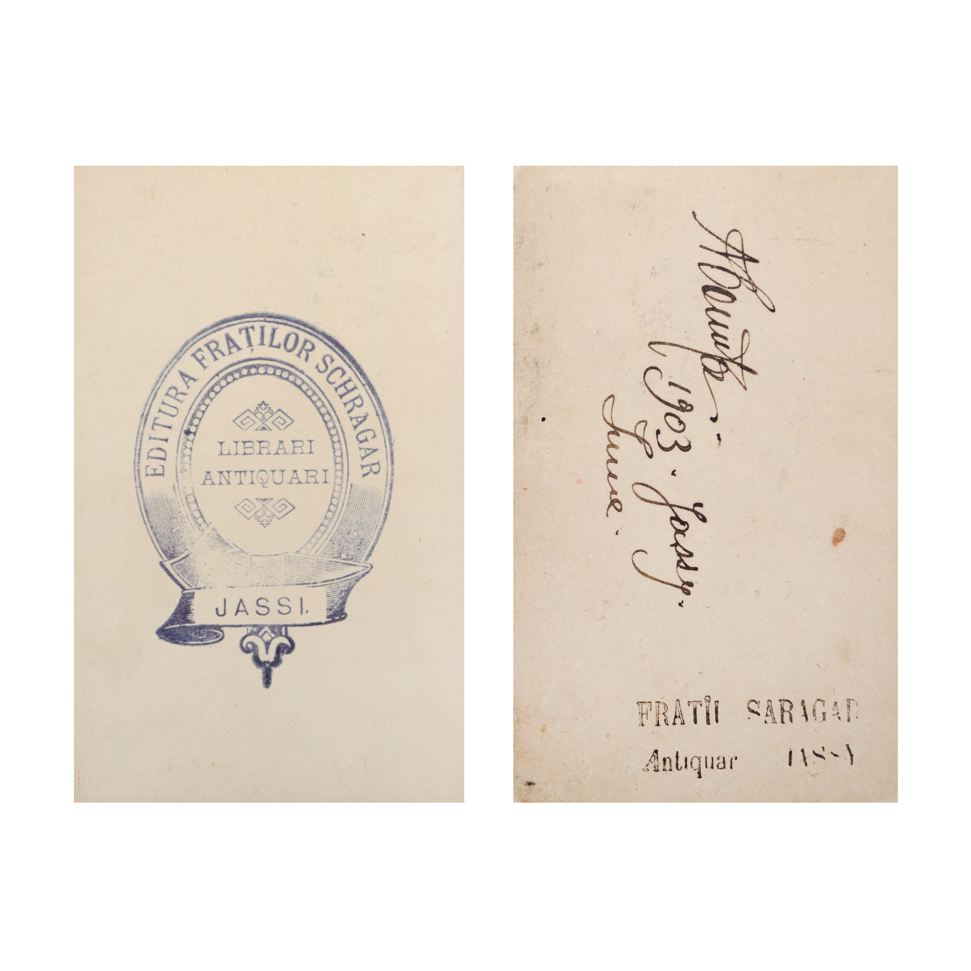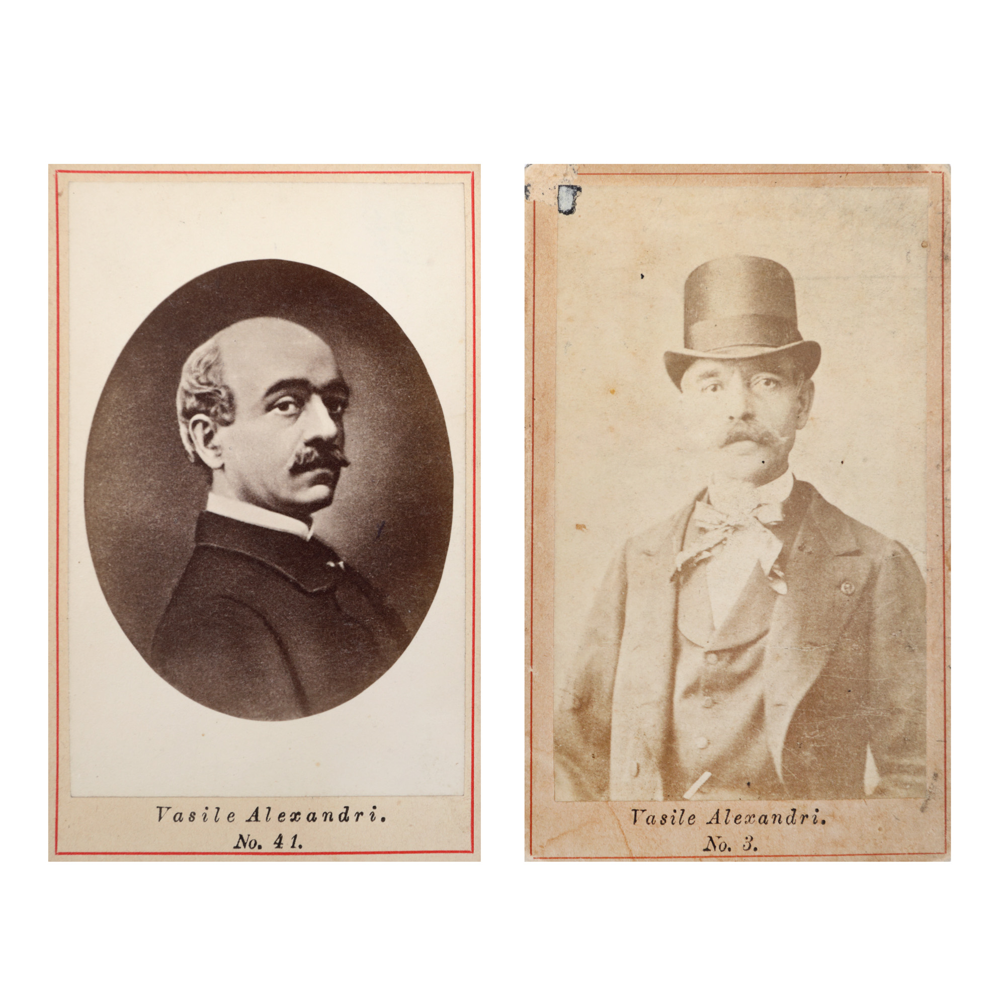 118. Lot format din două fotografii de epocă ilustrându-l pe Vasile Alecsandri, editori Frații Șaraga, Iași, cca. 1900
