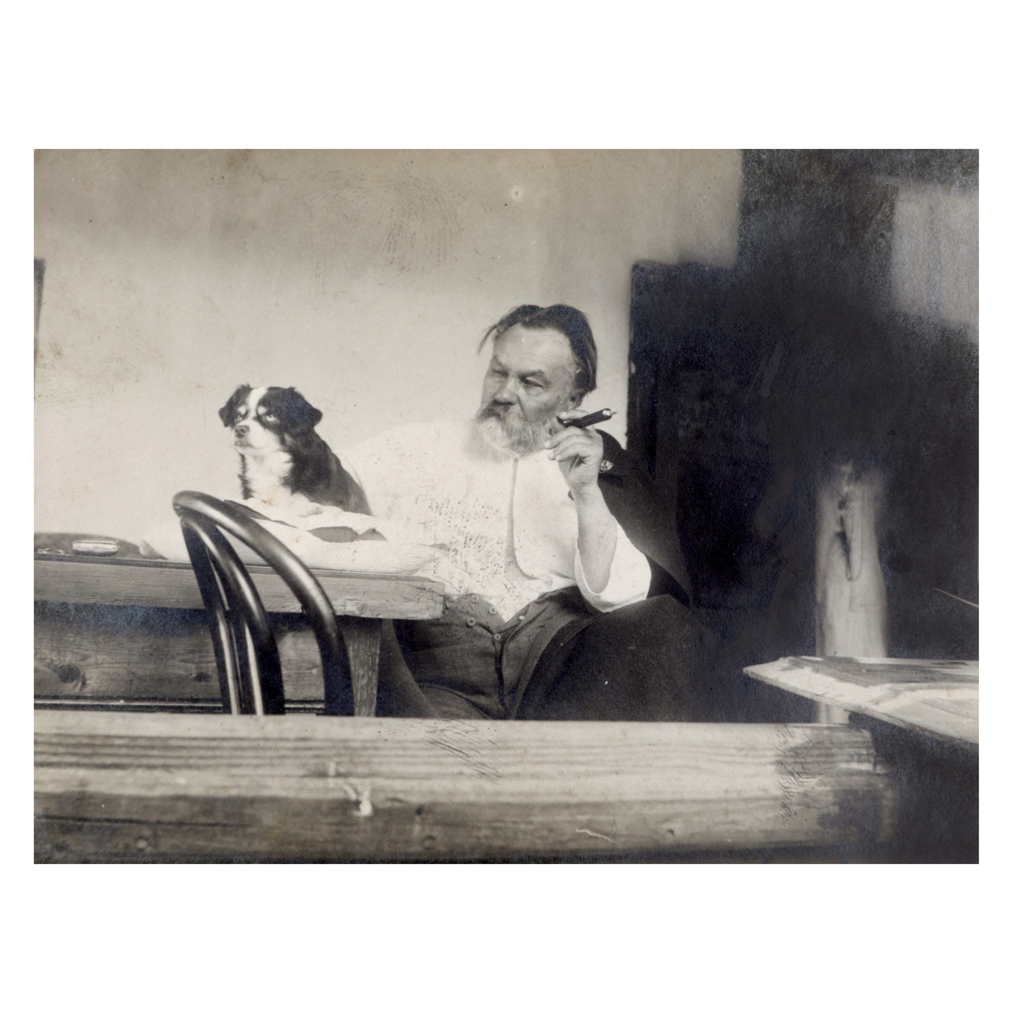 125. Lot format din șapte fotografii de epocă ce îl ilustrează pe Calistrat Hogaș în ipostaze casnice