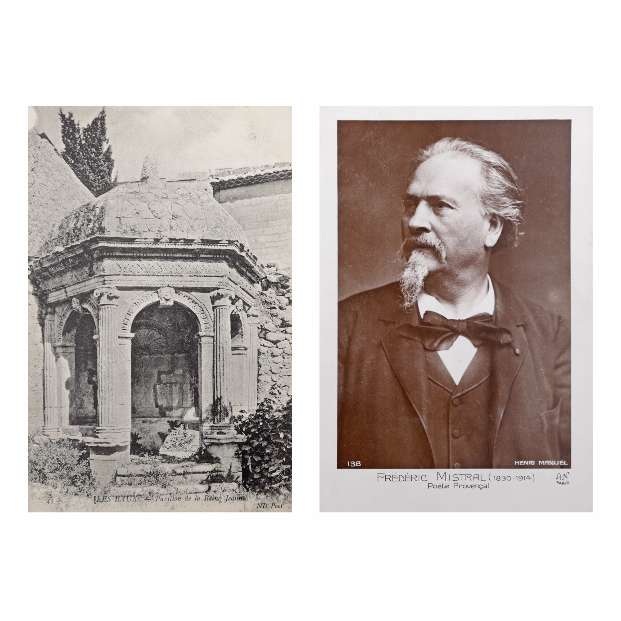 117. Lot format dintr-o carte poștală scrisă de Frederic Mistral, câștigător al premiului Nobel pentru literatură, 1907, și o fotografie ilustrandu-l pe acesta, cca. 1930