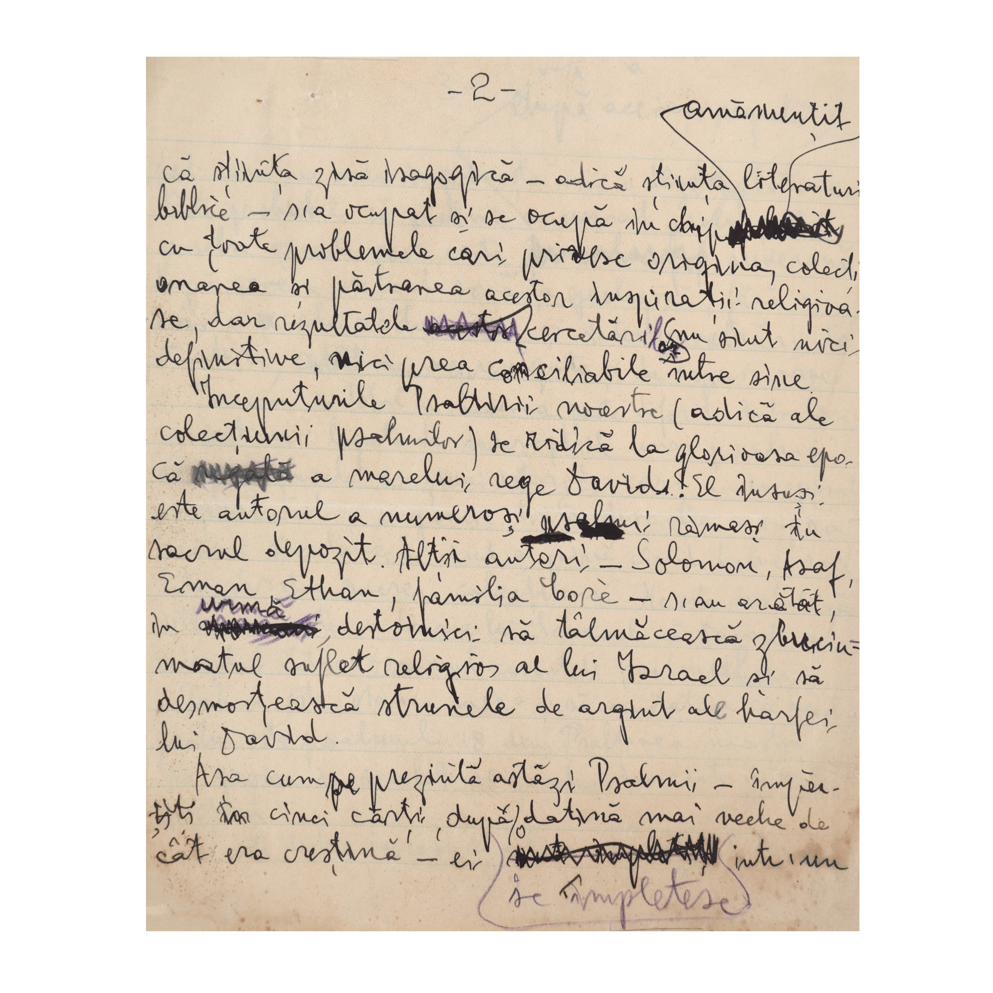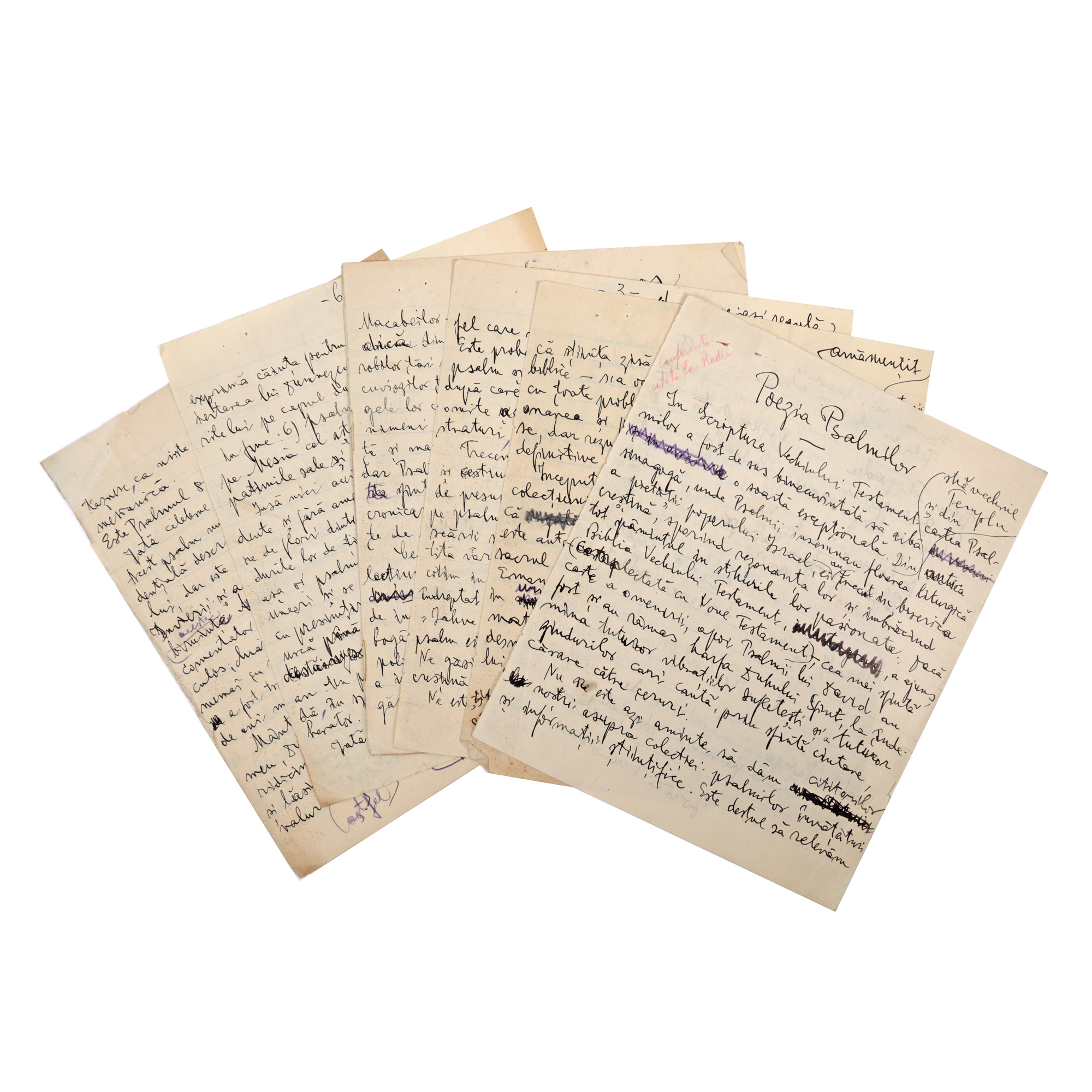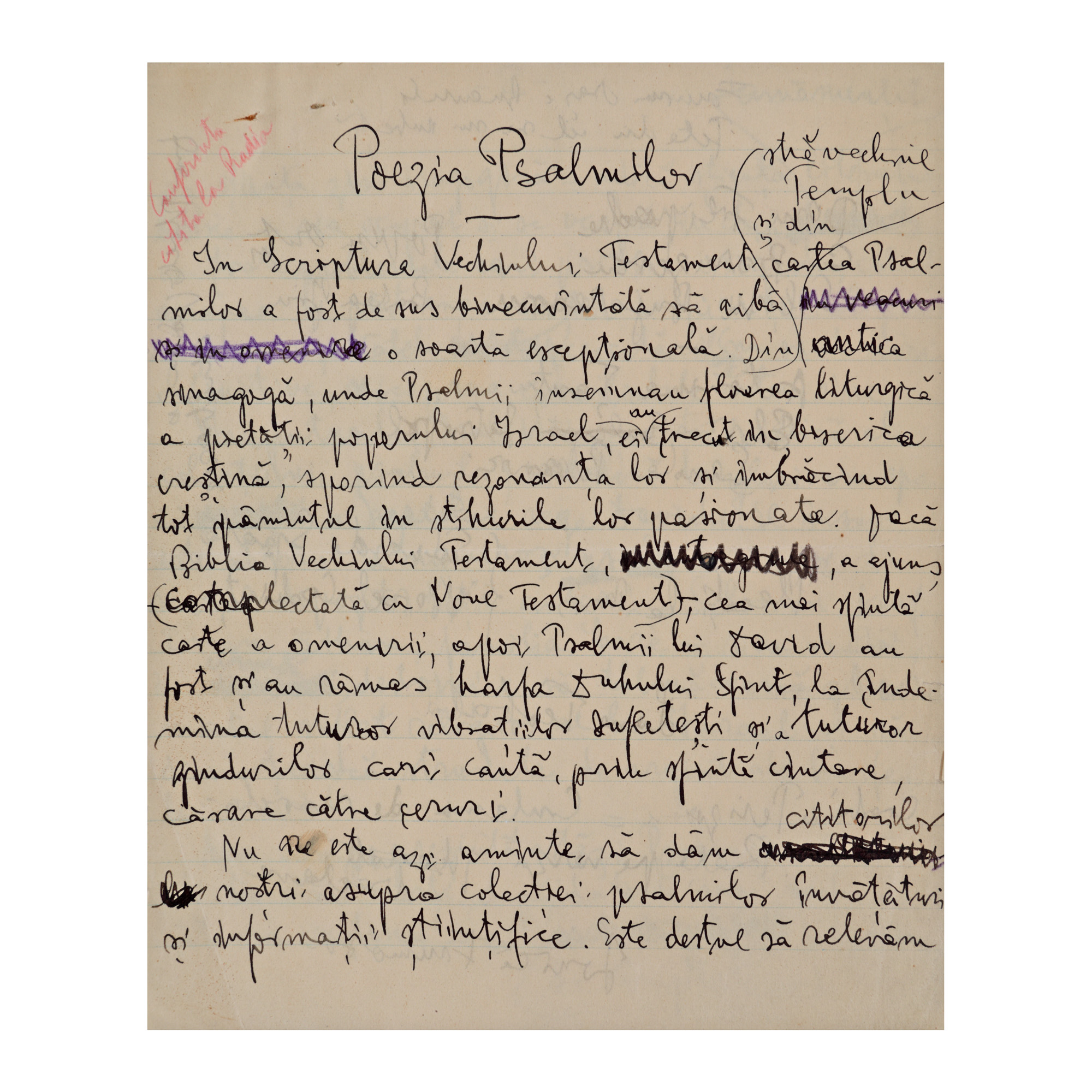106. Lot Gala Galaction format dintr-un manuscris, „Poezia Psalmilor", și scrisoare a lui către un prieten, 1933, provine din colecția istorică Șerban Țuculescu-Maria Galaction