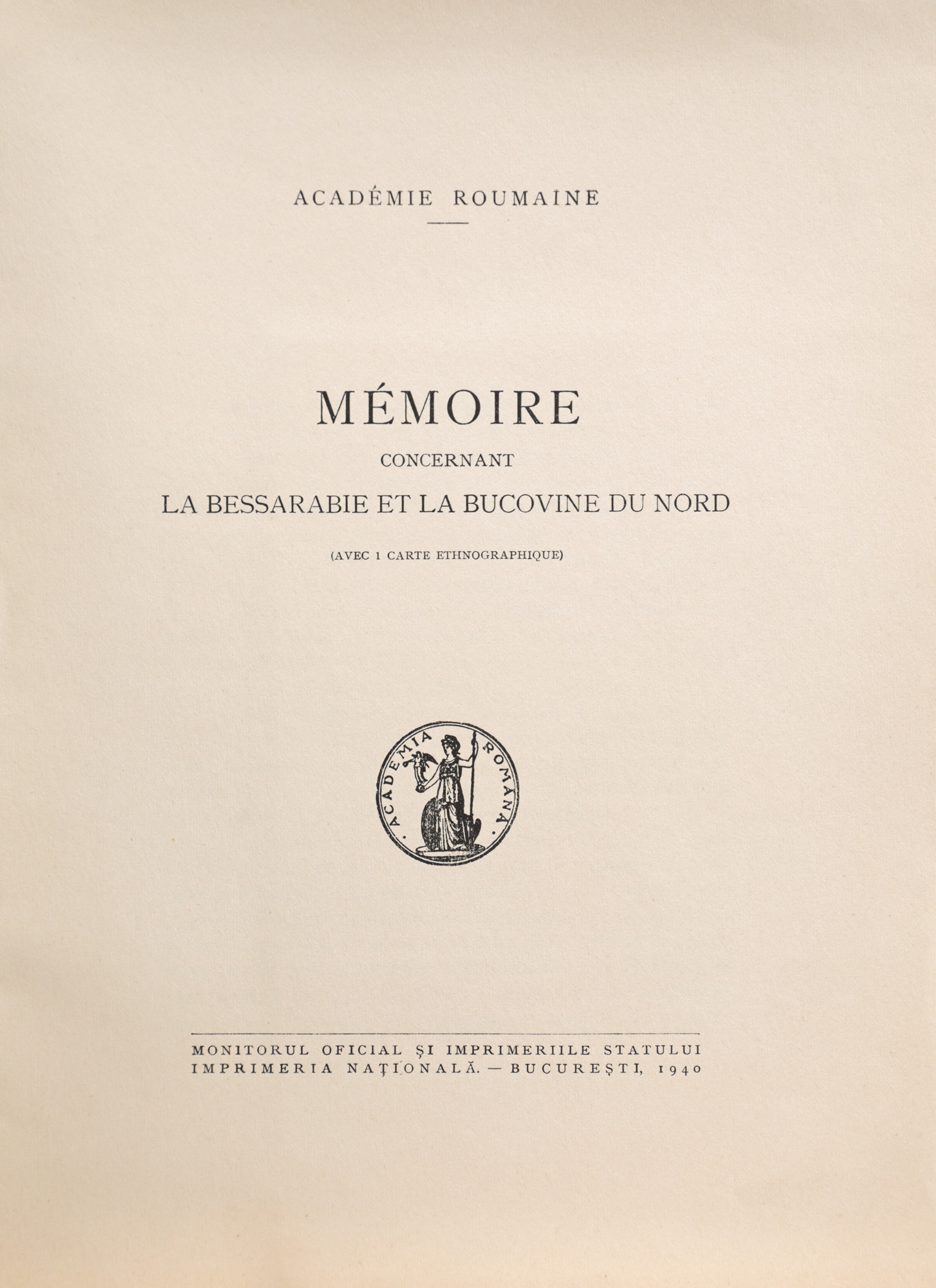 168. ”Memorandum referitor la Basarabia si Bucovina de Nord”, însoțit de o hartă etnografică, Academia Română, București, 1940