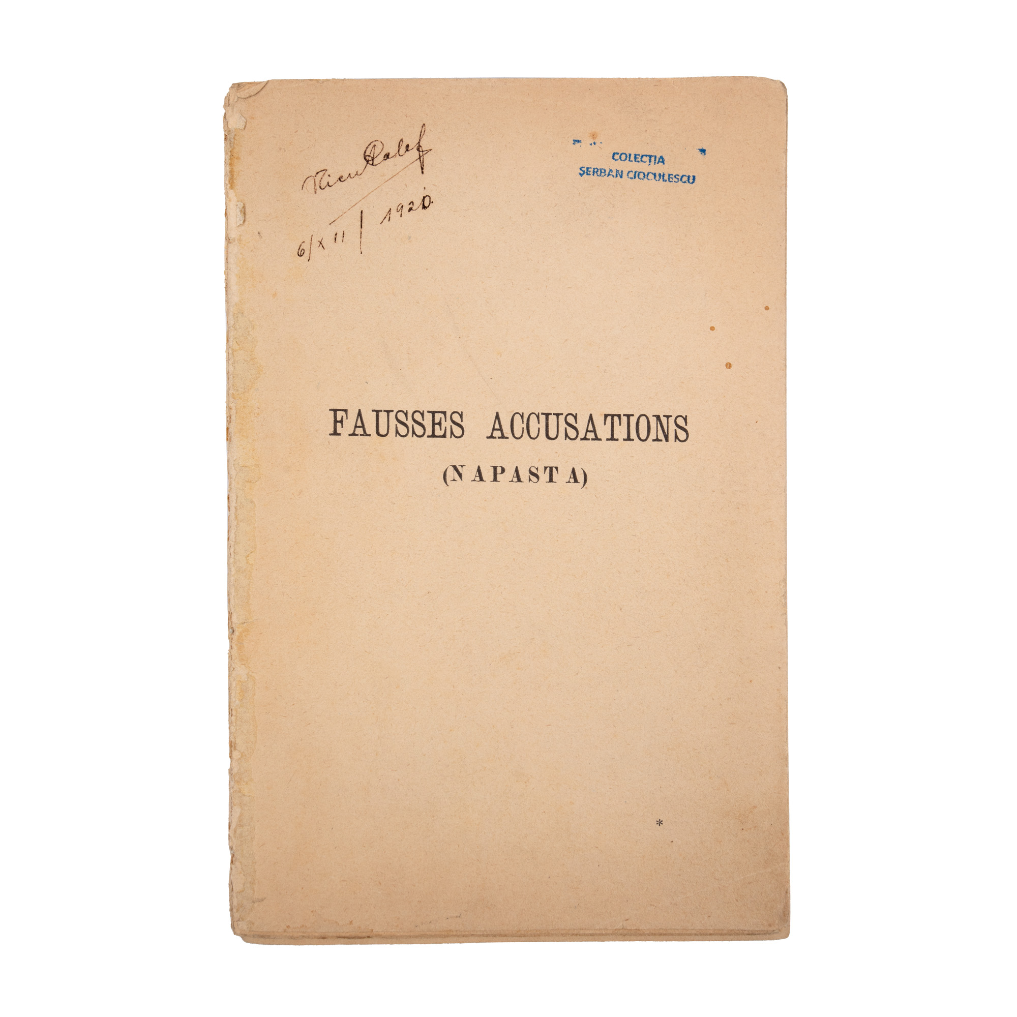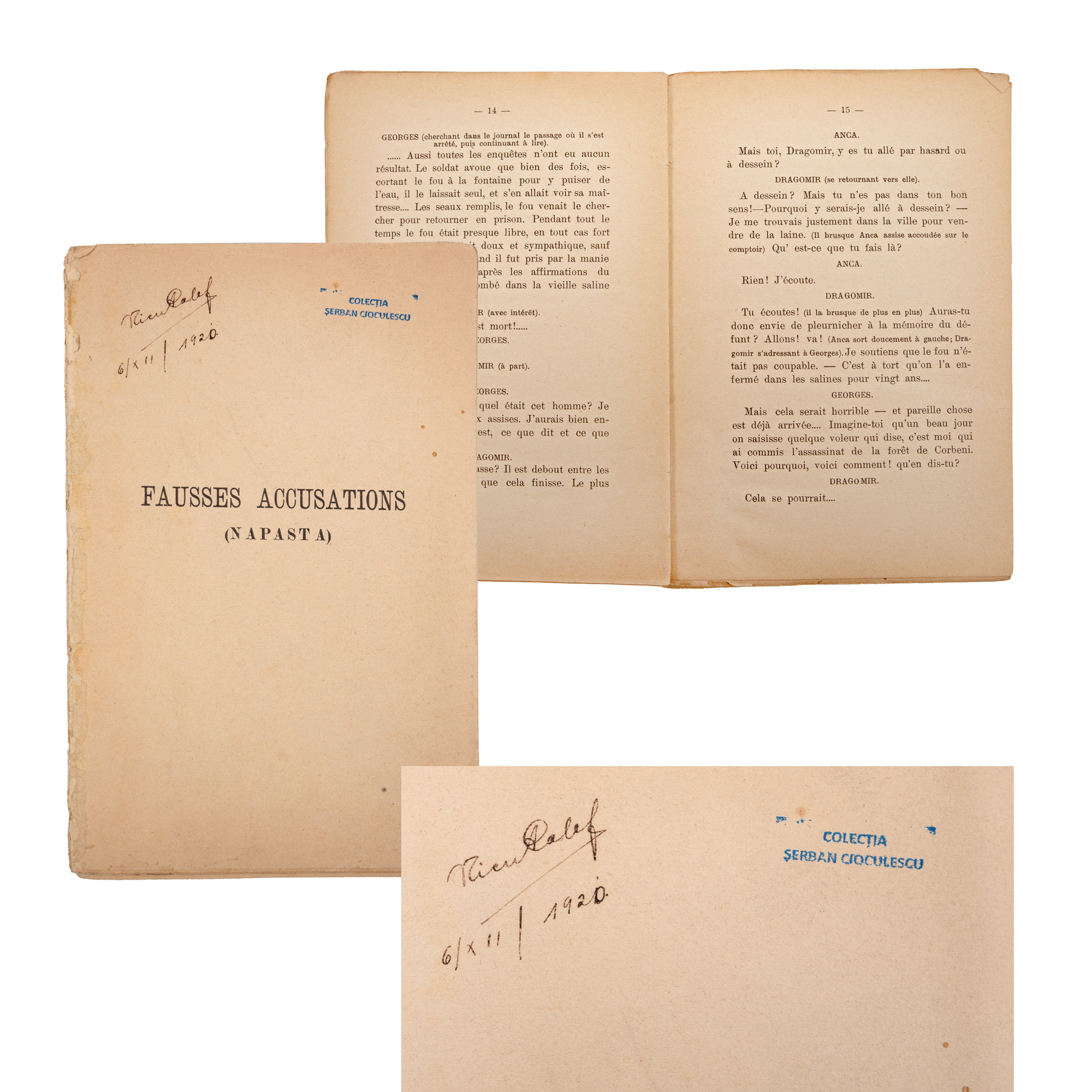 188. ”Năpasta”, de Ion Luca Caragiale, franceză, Craiova, 1896, cu ex-libris Nicu Calef, provine din colecția criticului literar Șerban Cioculescu