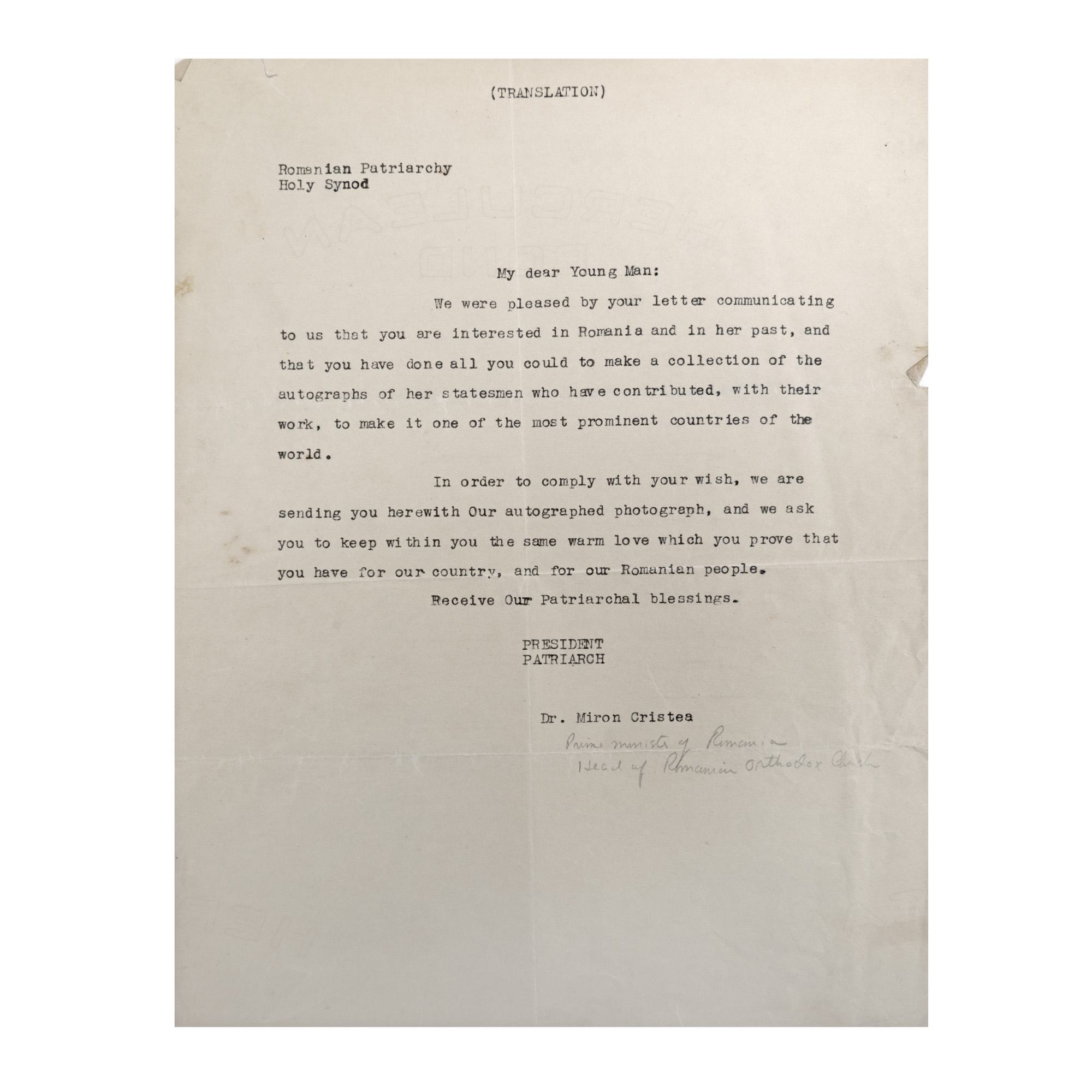 109. Numirea Părintelui Gala Galaction la conducerea Administrației Casei Bisericii, 1916, cu semnătura olografă a ministrului Cultelor și Instrucțiunii Publice I.G. Duca, provine din colecția istorică Șerban Țuculescu-Maria Galaction