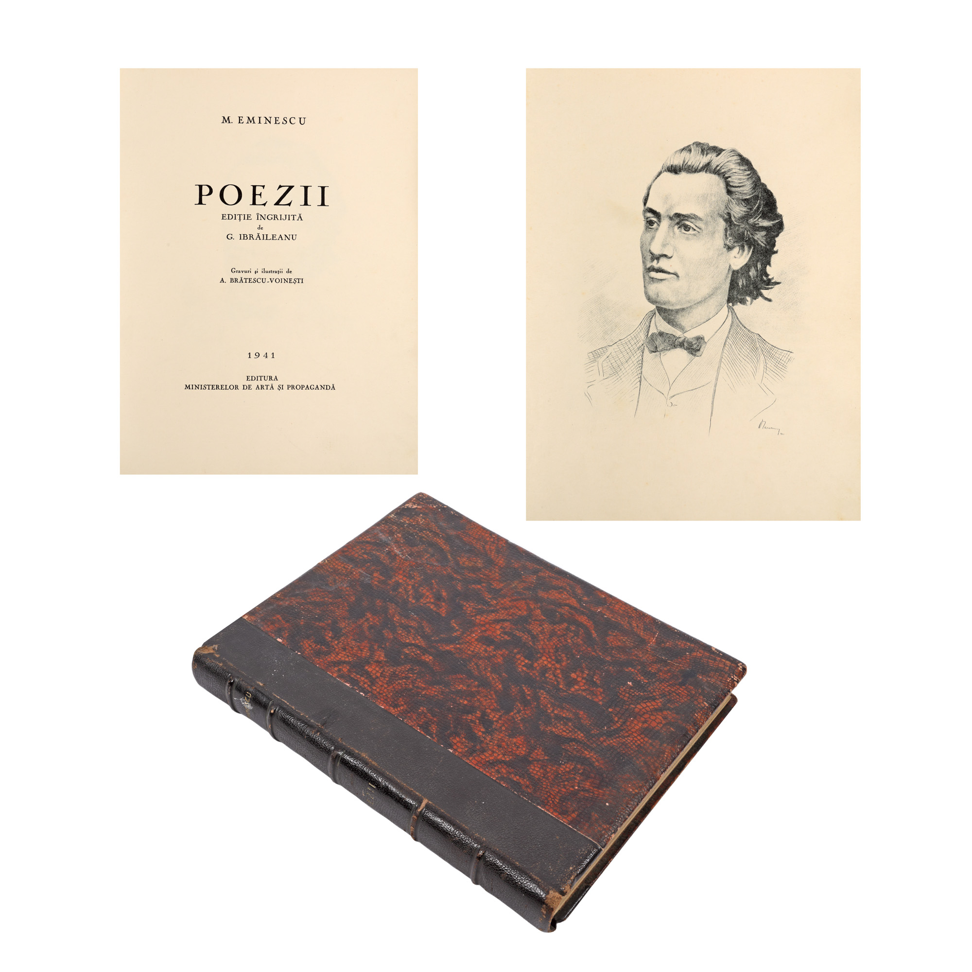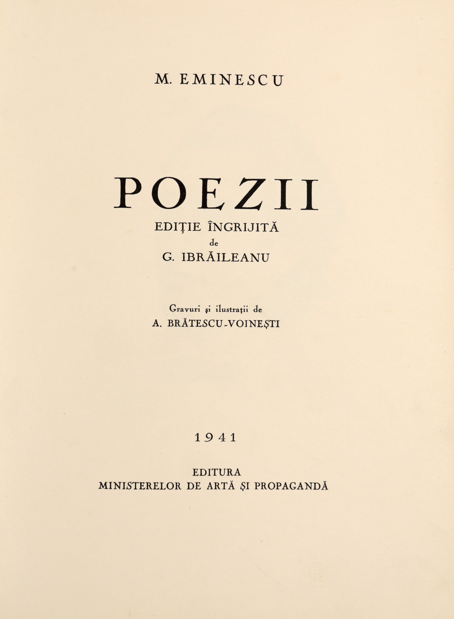 185. ”Poezii”, de Mihai Eminescu, ediție bibliofilă îngrijită de G. Ibrăileanu, cu ilustrații de Alexandru Brătescu-Voinești, Ramuri, Craiova,1941