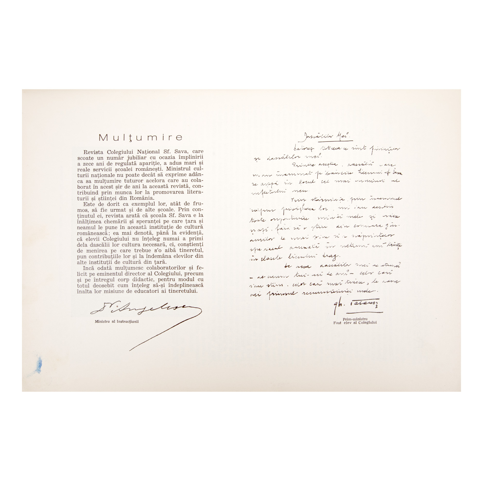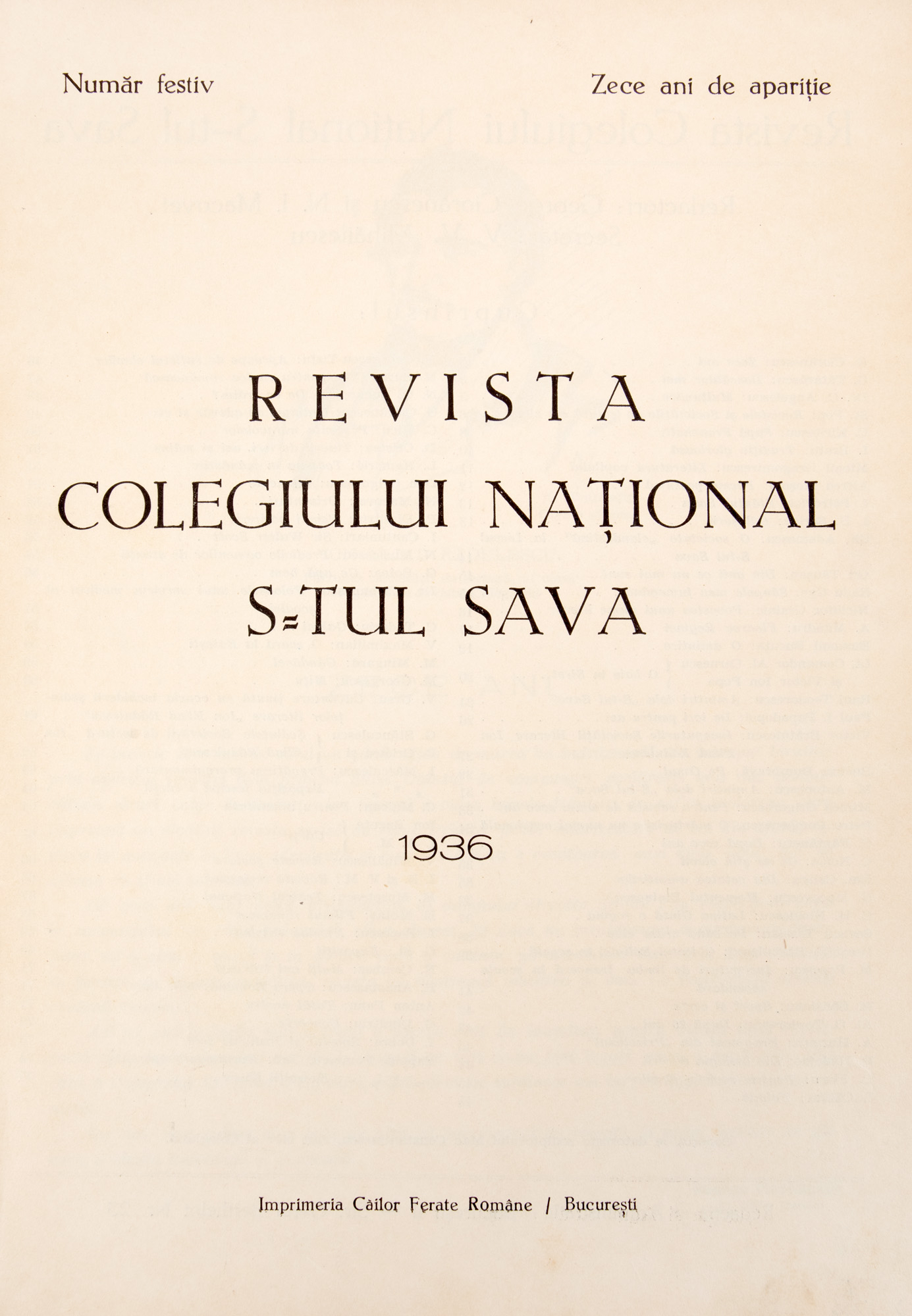 În acest număr aniversar al revistei semnează personalități ale României care fuseseră elevi ai liceului, precum Ion Petrovici, Mihail Dragomirescu, Al. O. Teodoreanu, Petru Comarnescu, Constantin Noica, George Macovescu.