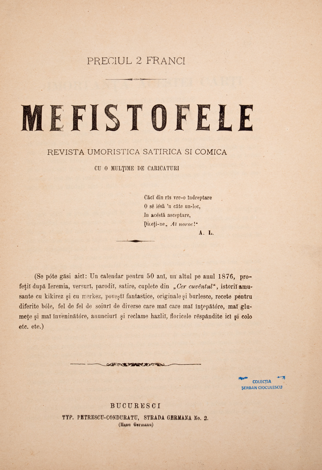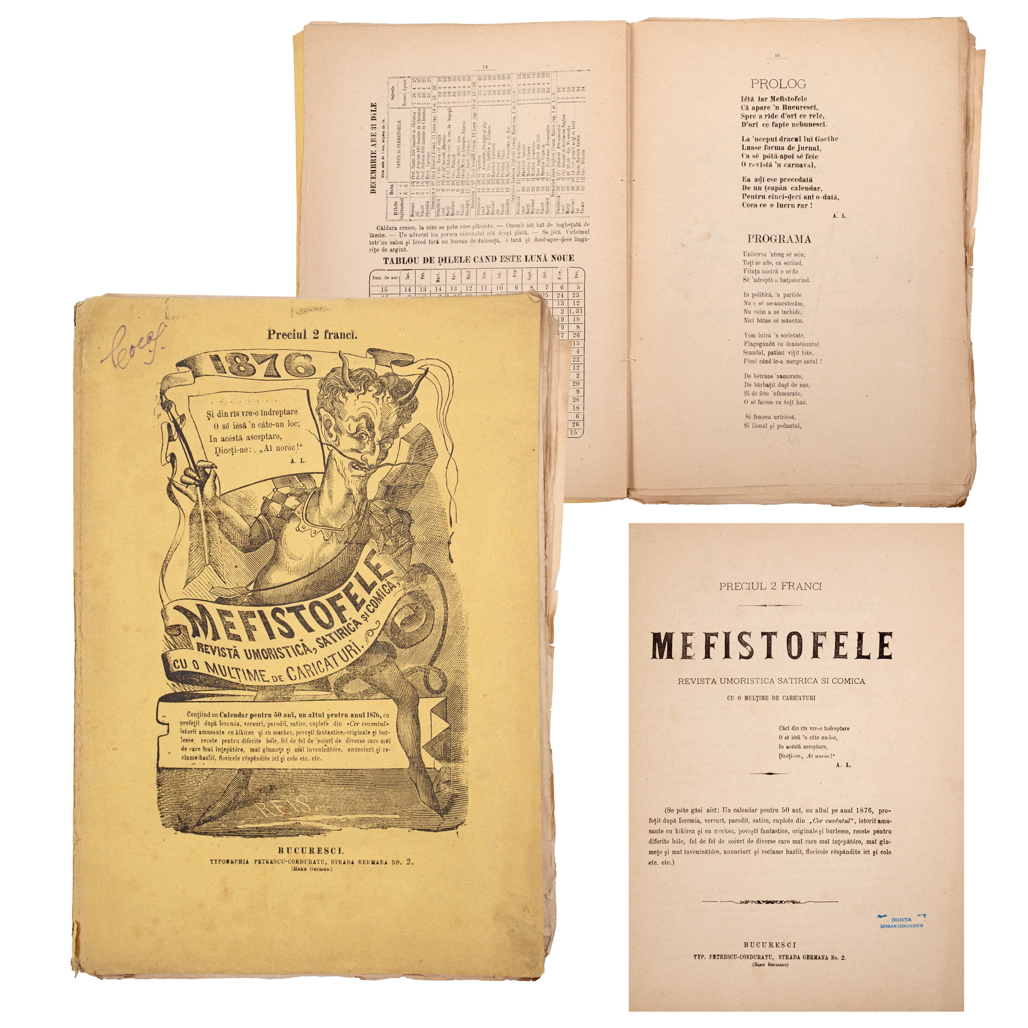 135. Revista "Mefistofele", București, 1876, cu ex-libris, provine din colecția criticului literar Șerban Cioculescu