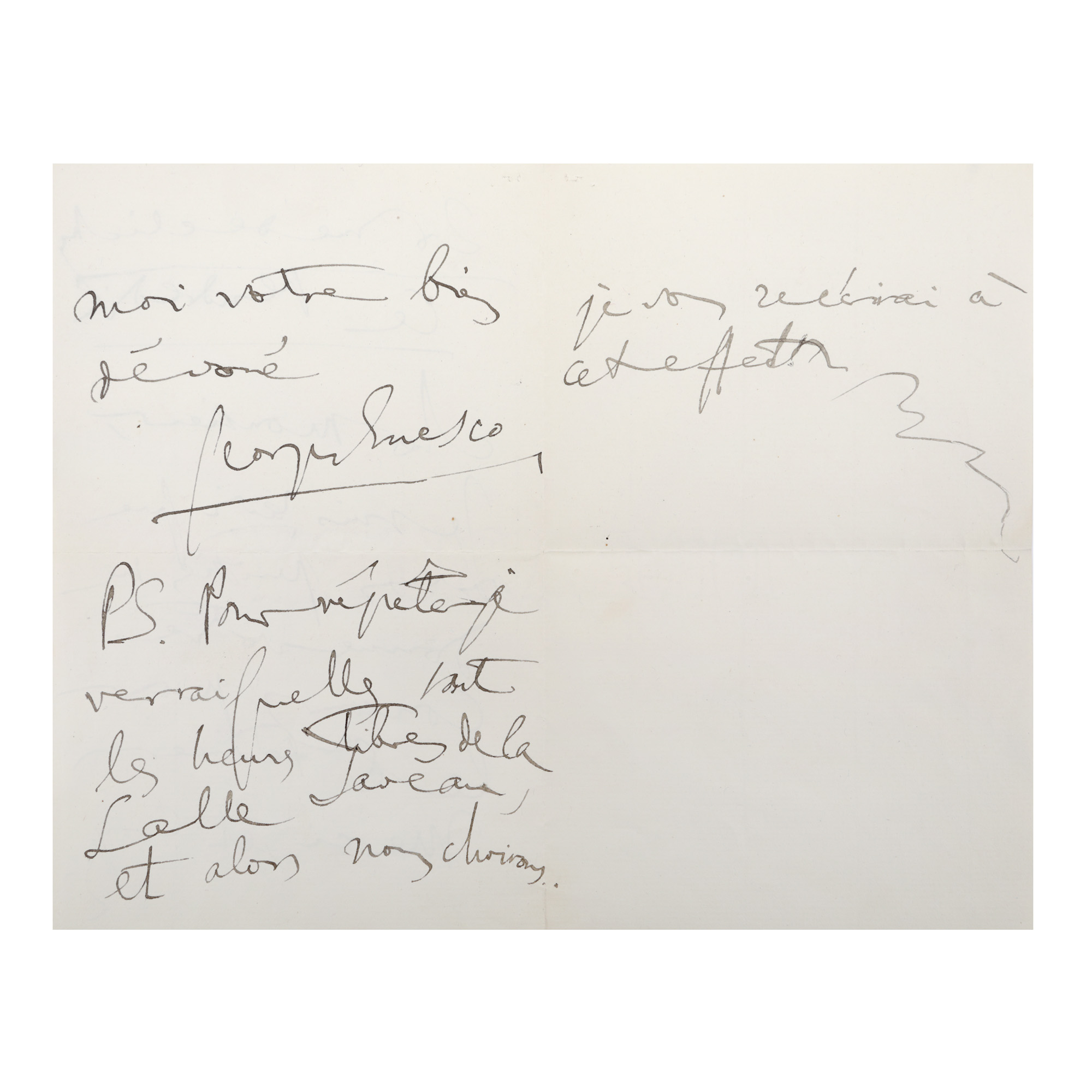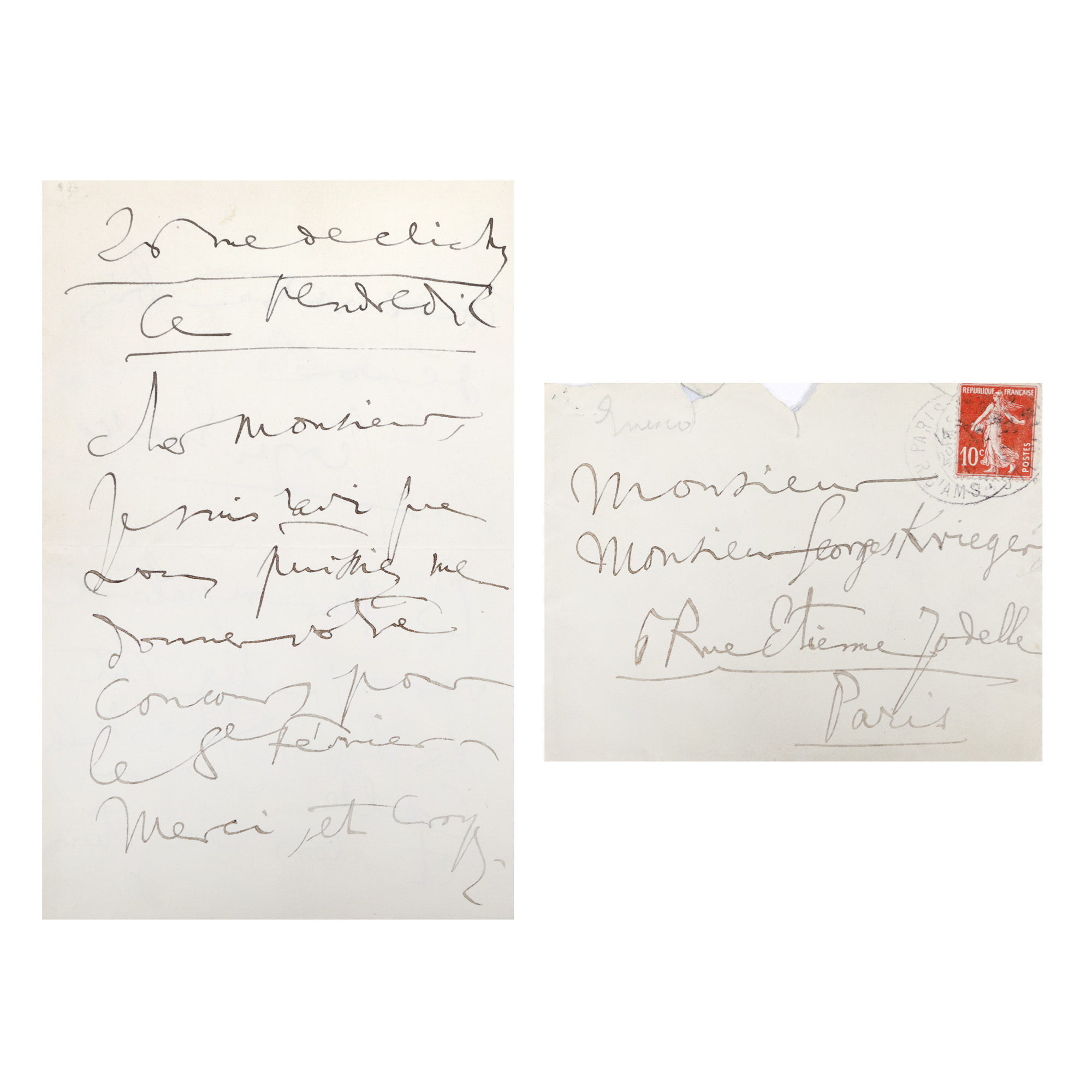 88. Scrisoare a lui George Enescu către compozitorul Georges Kriéger, Paris, cca. 1914, în plicul original și semnată olograf