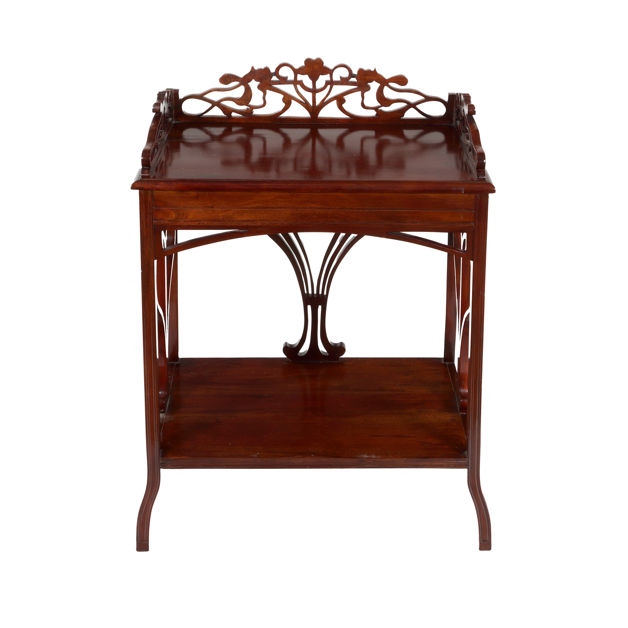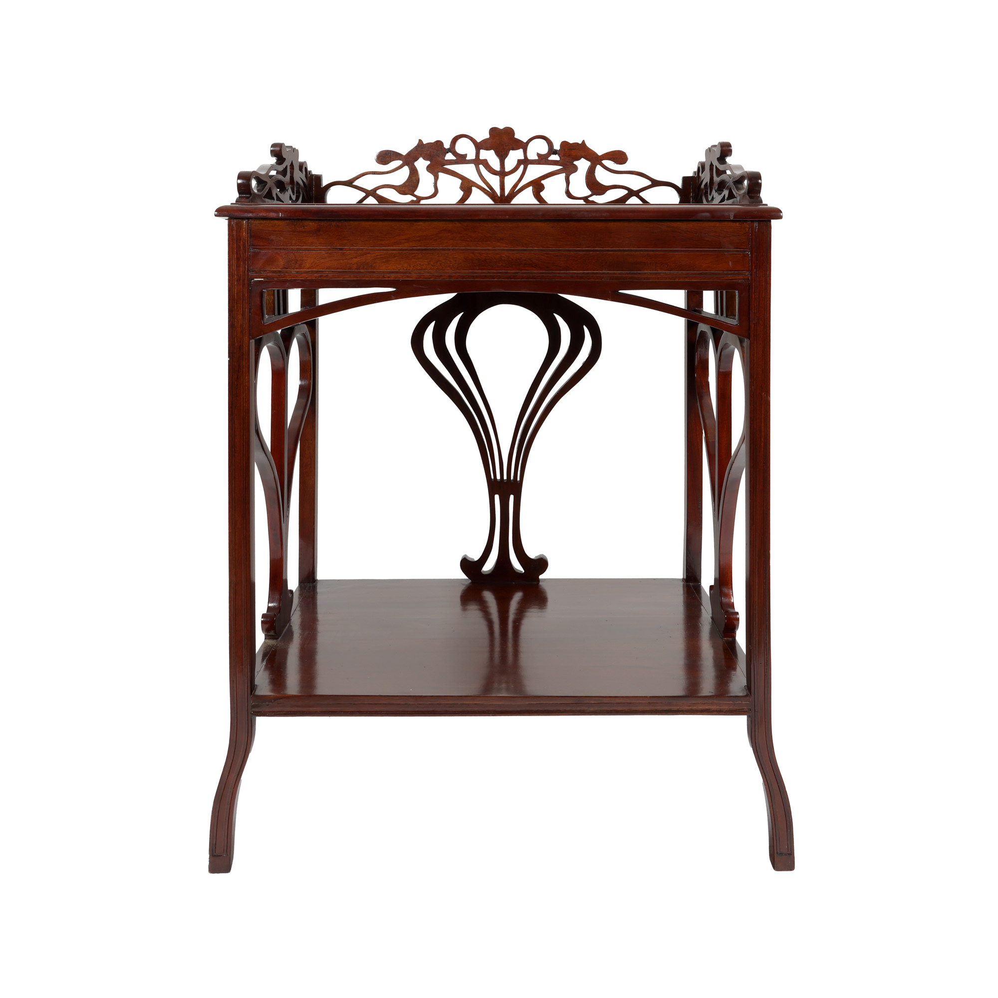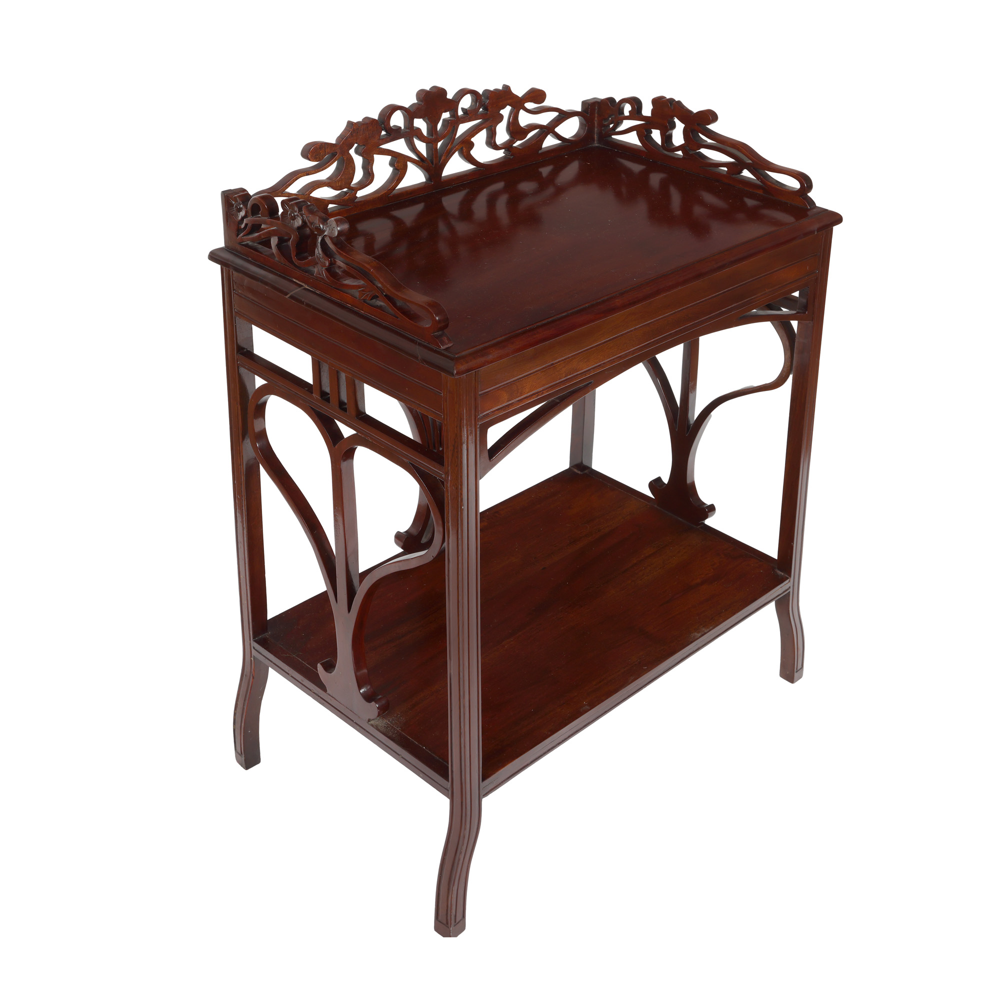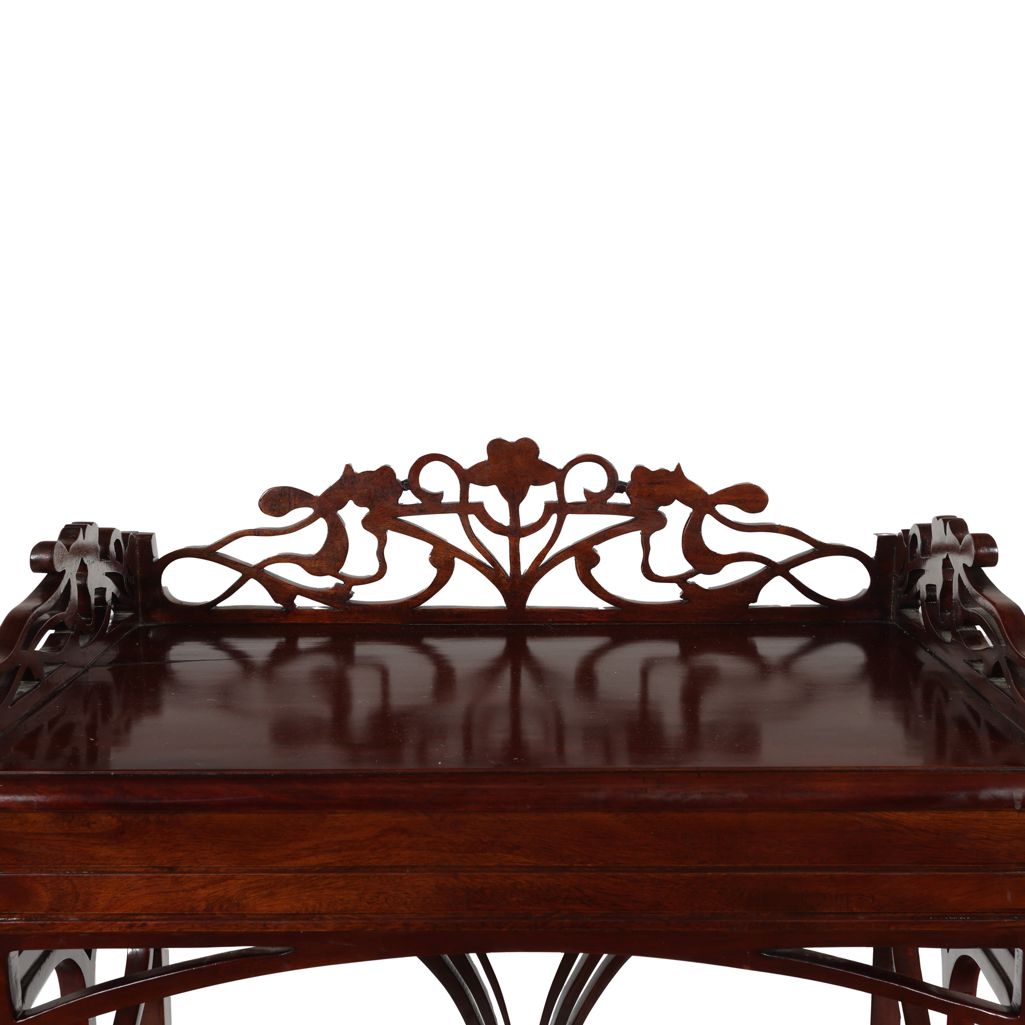 73. Consolă Art Nouveau, din lemn de acaju, ornată cu elemente vegetale stilizate, începutul sec. XX