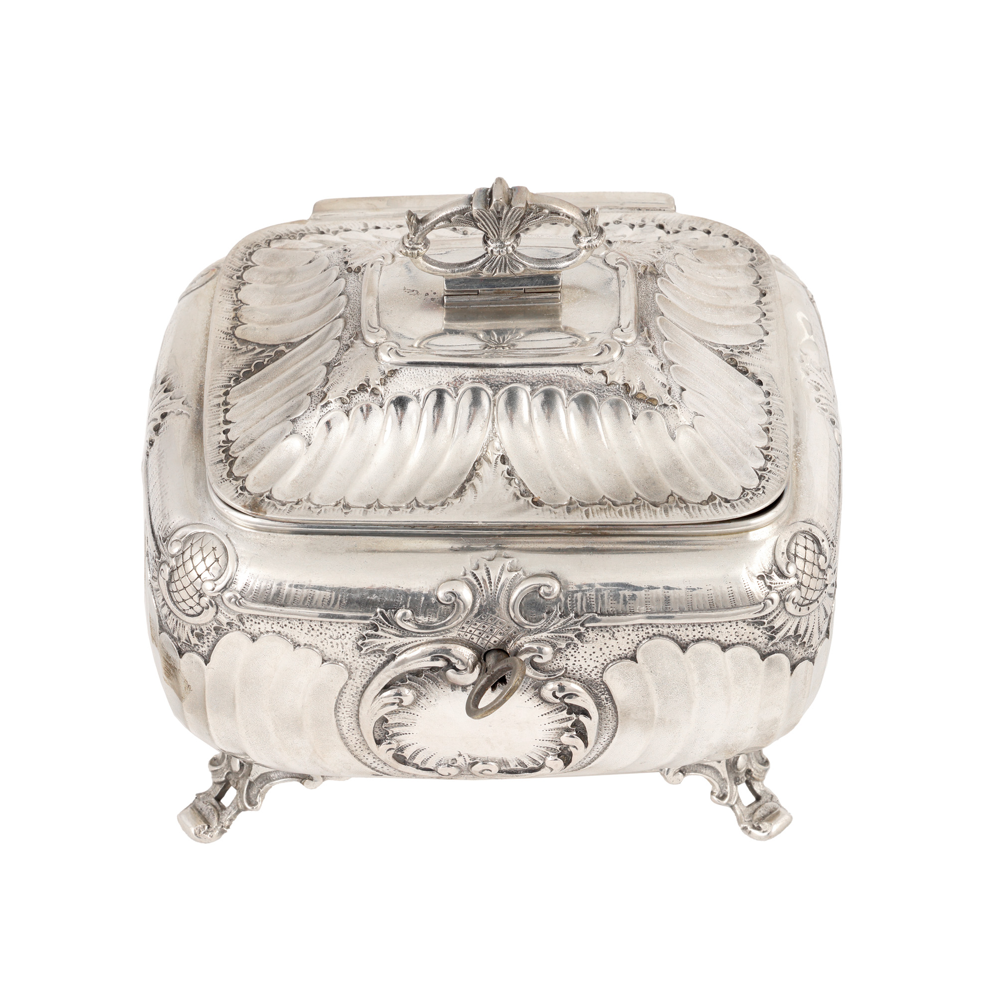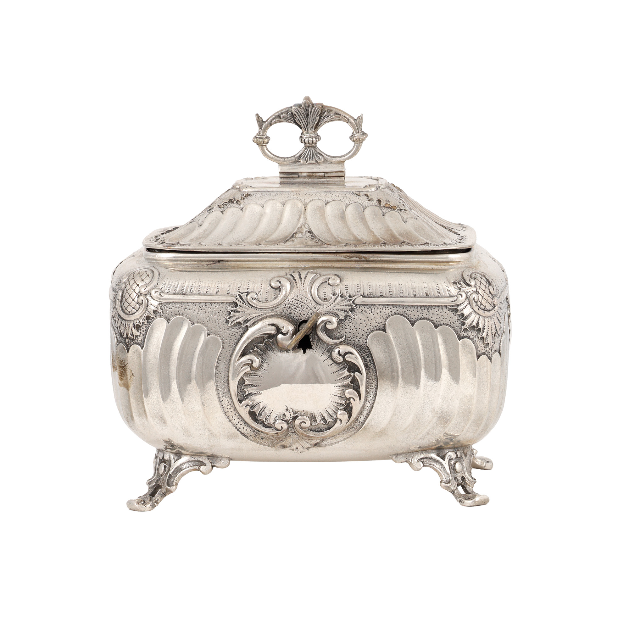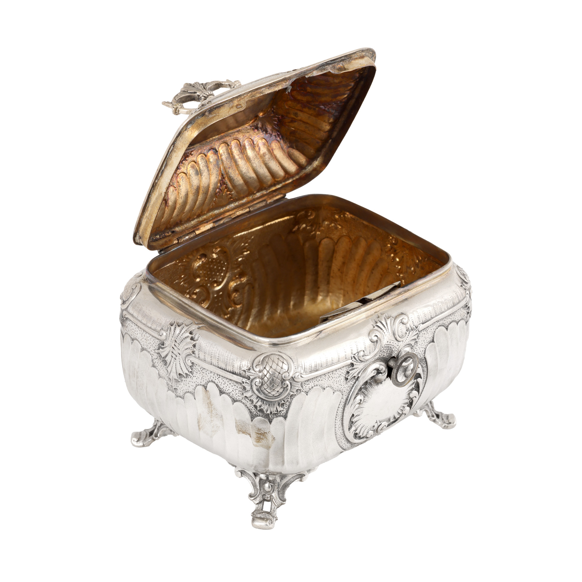 39. Cutie din argint, decorată cu elemente Rococo, păstrează cheița, sfârșitul sec. XIX