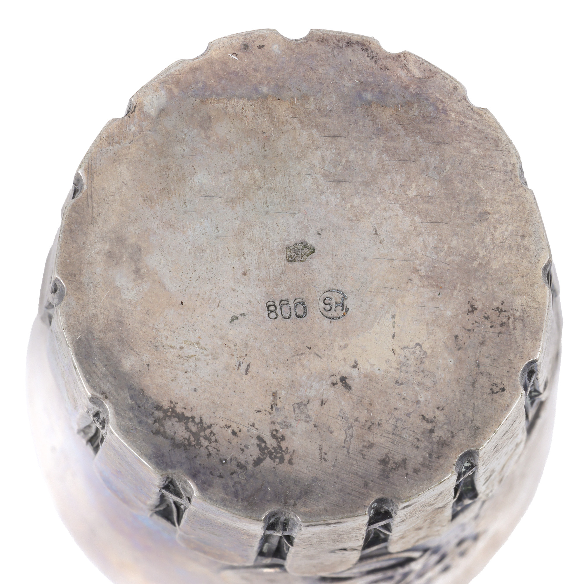 11. Pahar din argint, decorat cu joc de copii, poanson de meșter HS, poartă monograma proprietarului EP