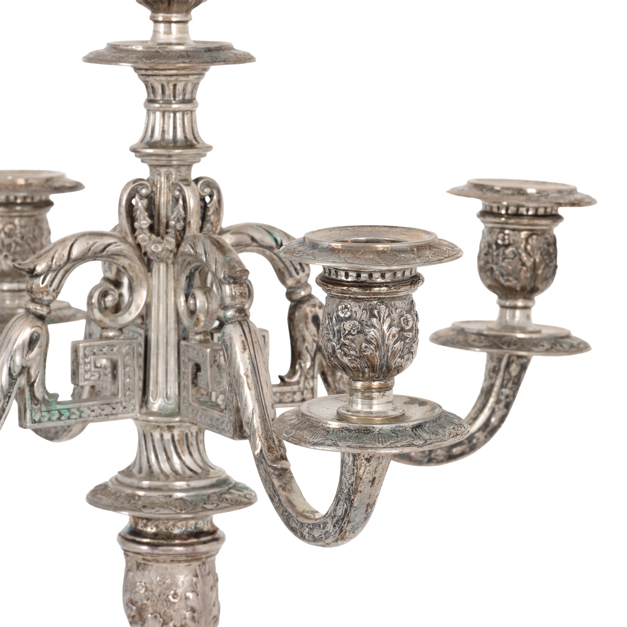 19. Pereche de sfeșnice cu cinci lumini, din argint, cca. 1900