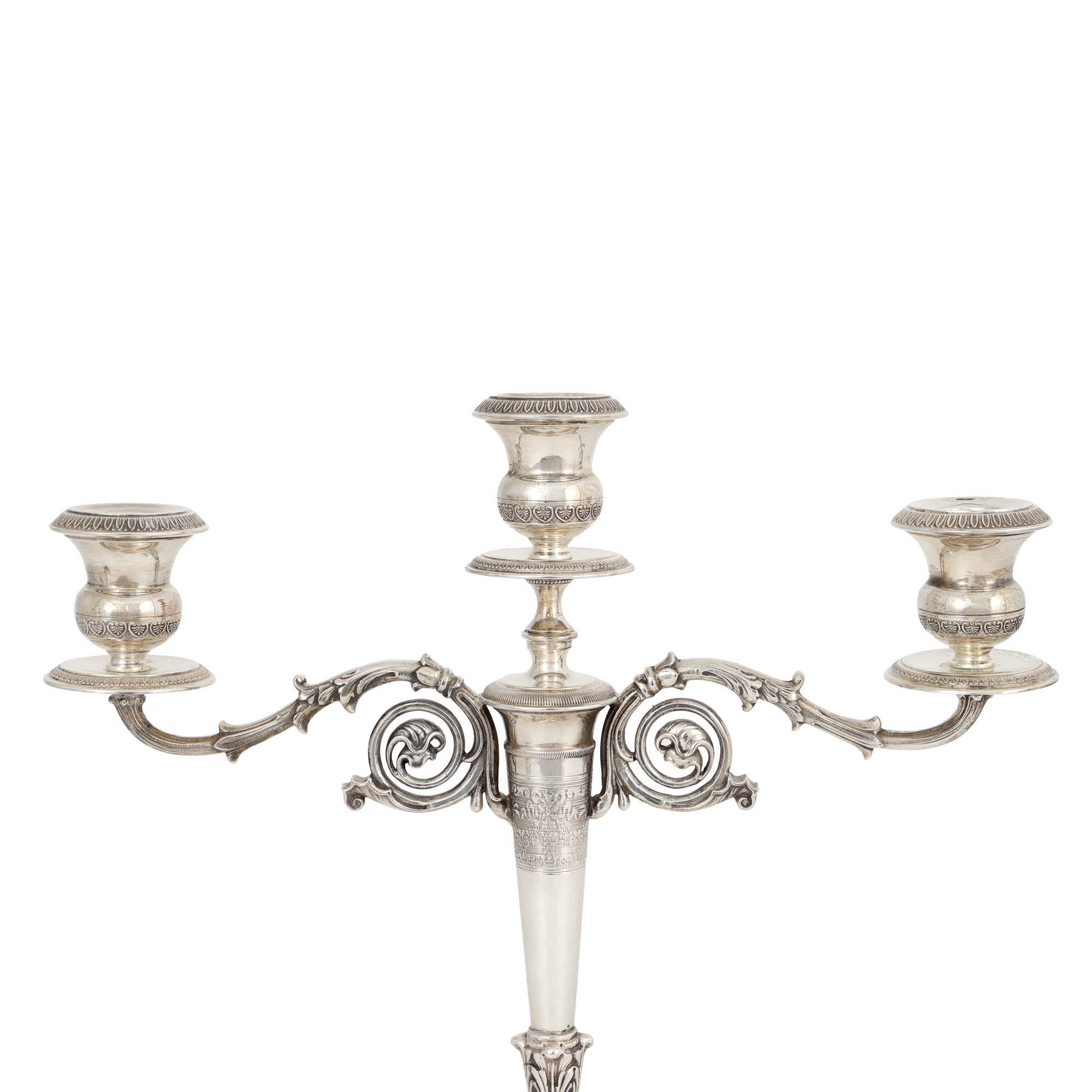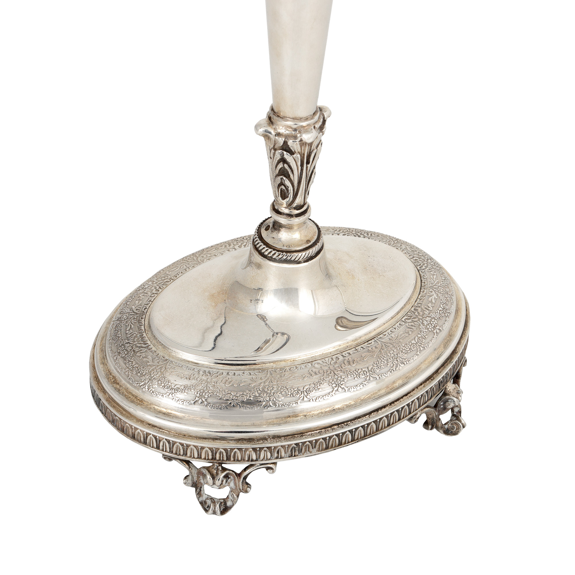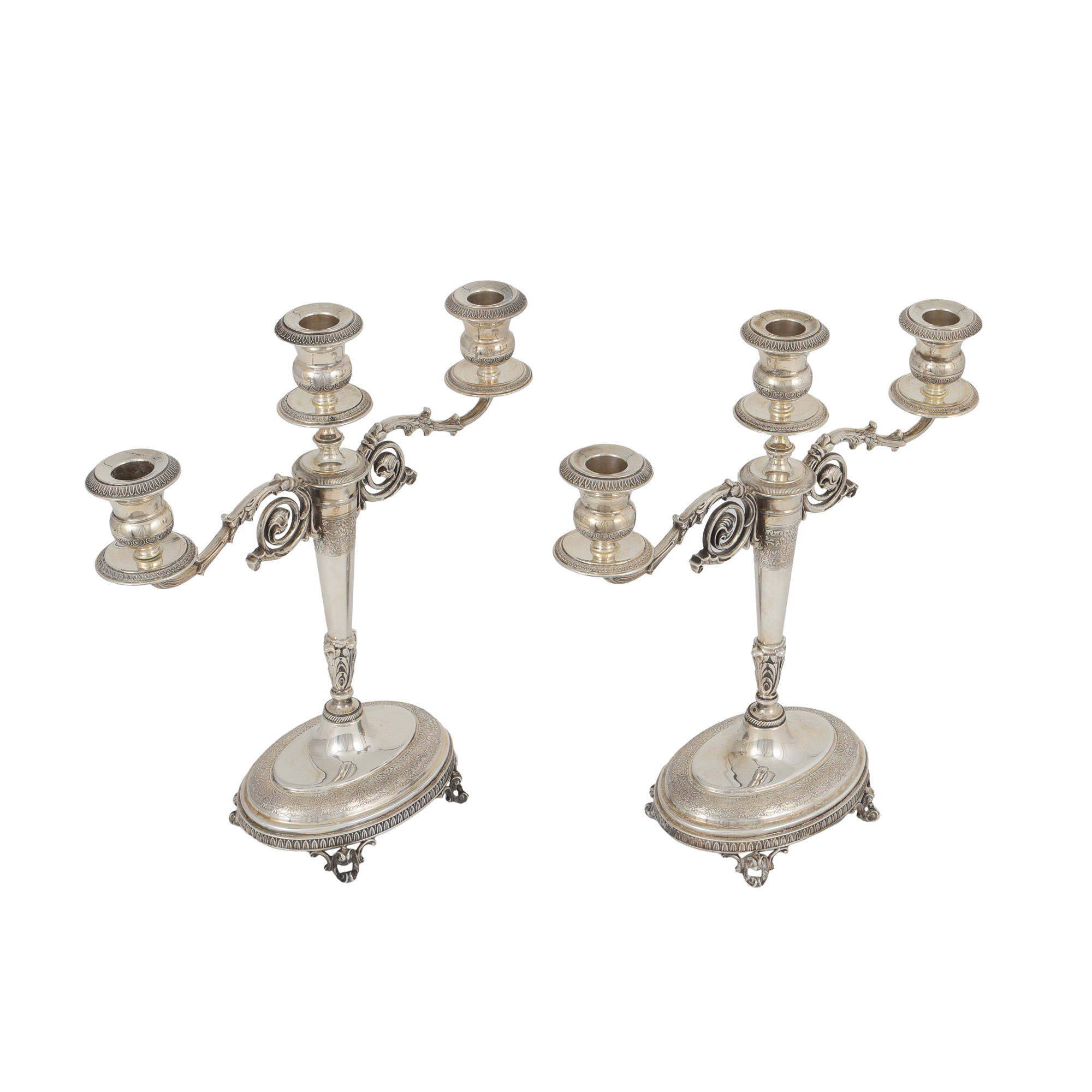 17. Pereche de sfeșnice din argint, ornată cu frize vegetale, mijlocul sec. XX