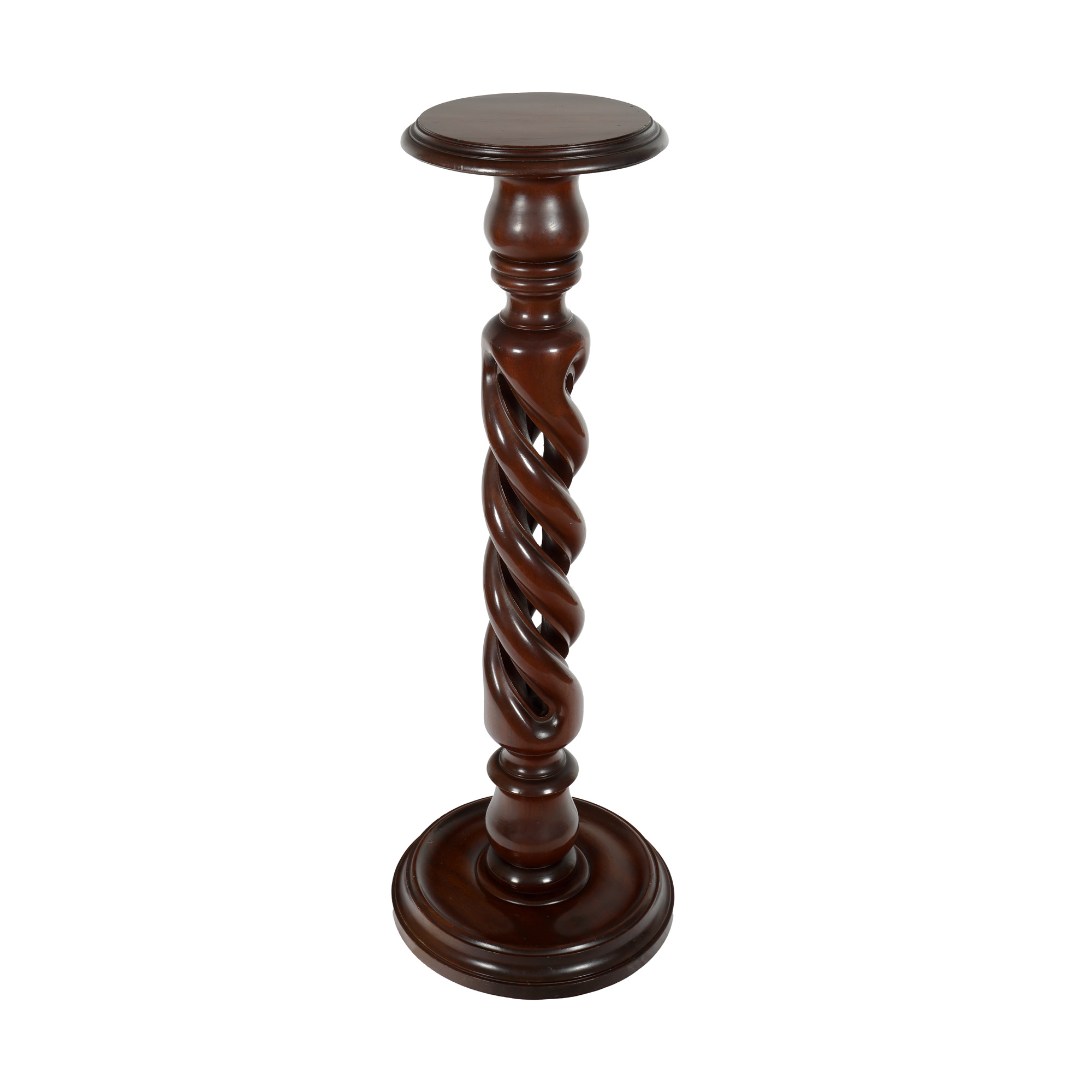 58. Piedestal din lemn de nuc, pe picior torsat