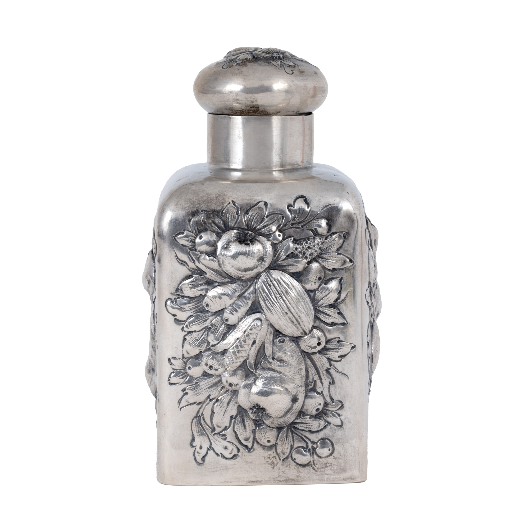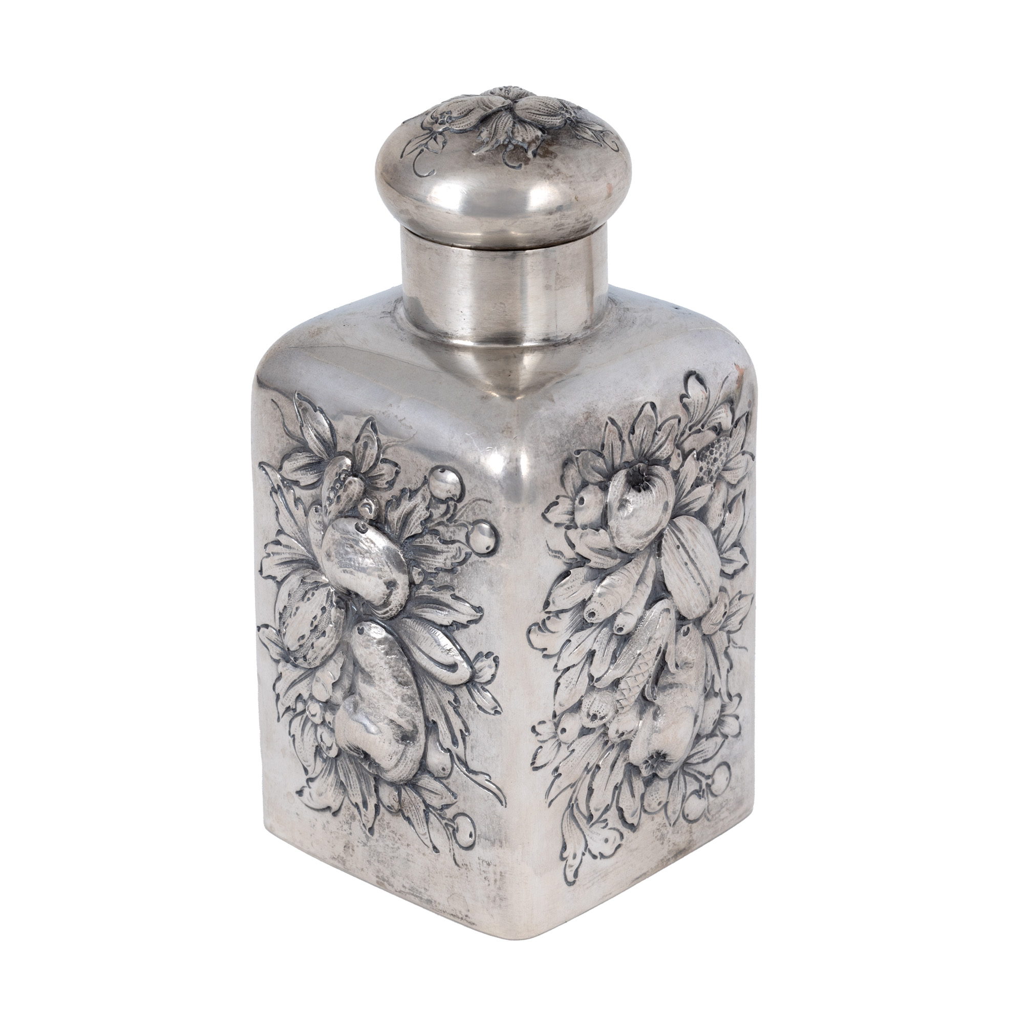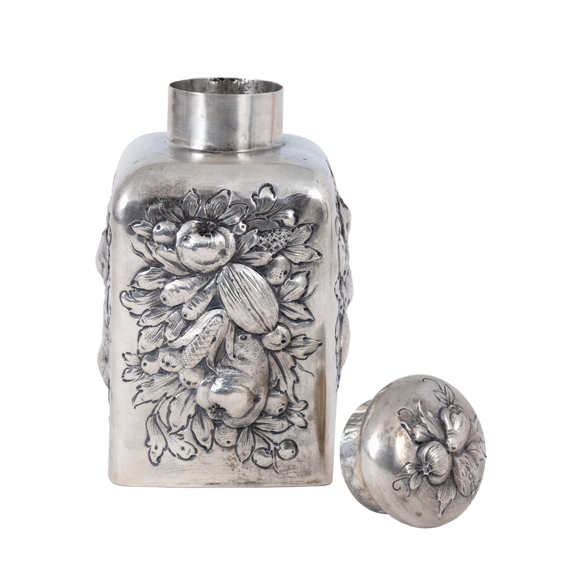 48. Recipient cu capac P. Bruckmann und Söhne, din argint, ornat cu elemente vegetale, sfârșitul sec. XIX