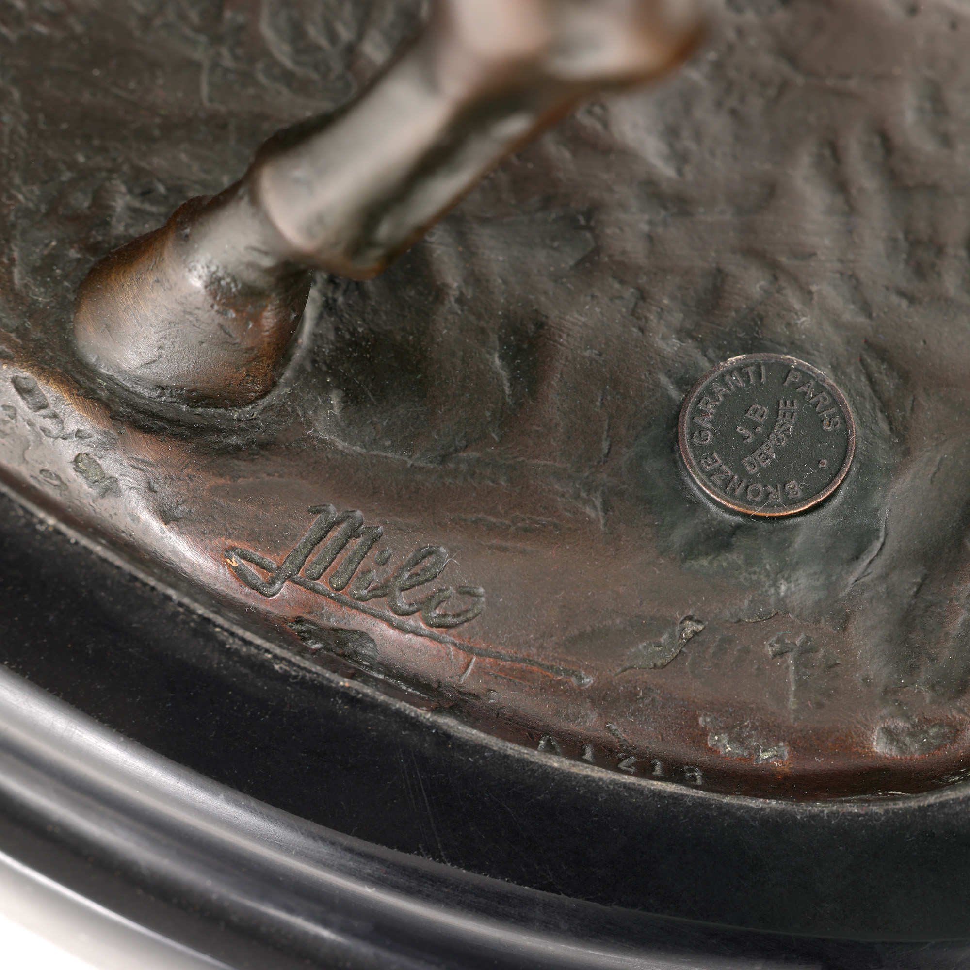 2. Statuetă hipică din bronz, semnată ”Milo”, pe postament de marmură